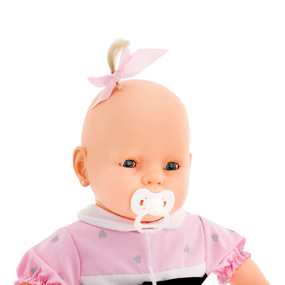 O primeiro é o seu cheirinho delicioso e gostoso de talco, igual ao de um bebê que acabou de sair do banho. Além disso, suas roupinhas são de alta costura e de estampas exclusivas. Ela possui uma linda pulseirinha de menininha, que é o verdadeiro atestado de mamãe e filhinha. E claro, o produto acompanha uma chupeta para quando o bebê for dormir. Este é um produto completo e seguro sendo recomendado para crianças a partir dos 3 anos de idade.