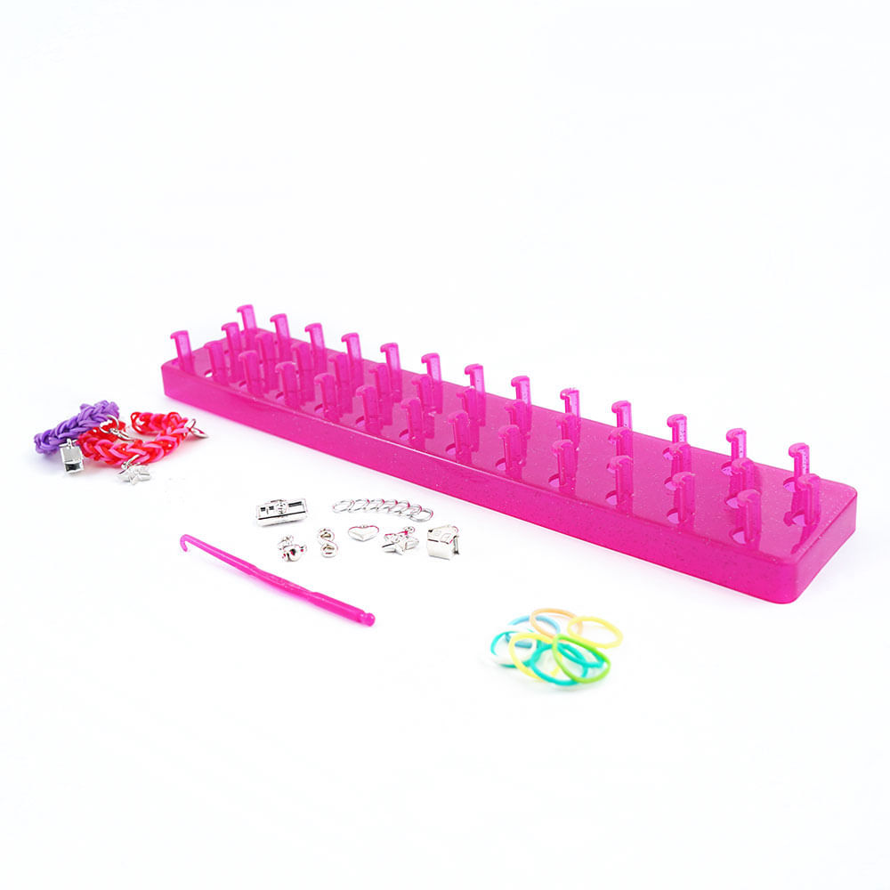 Crie diferentes modelos de pulseiras com elásticos coloridos com a Fábrica de Pulseiras da Luluca, agora com pingentes prateados que são a cara da nossa youtuber favorita. São 600 elásticos com mais de 10 cores para usar a criatividade, e agora com 15 pingentes incriveis para completar essa brincadeira.