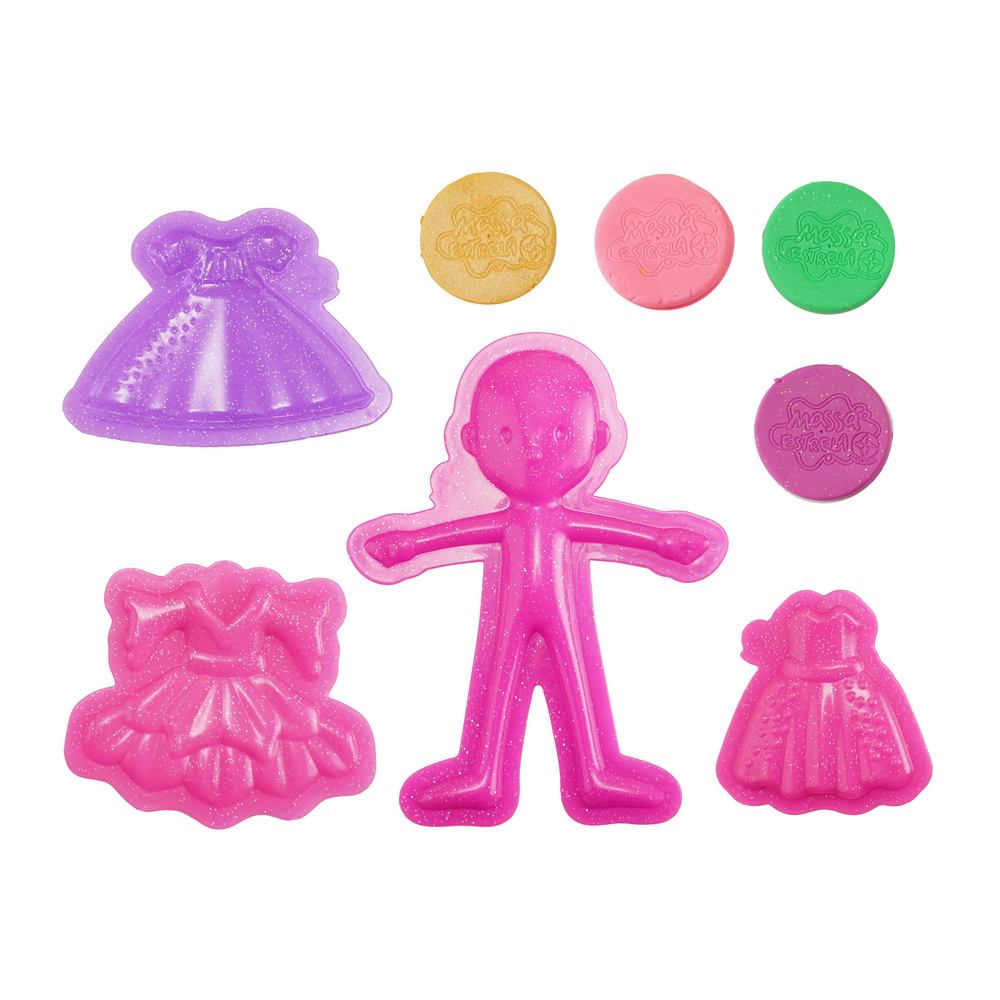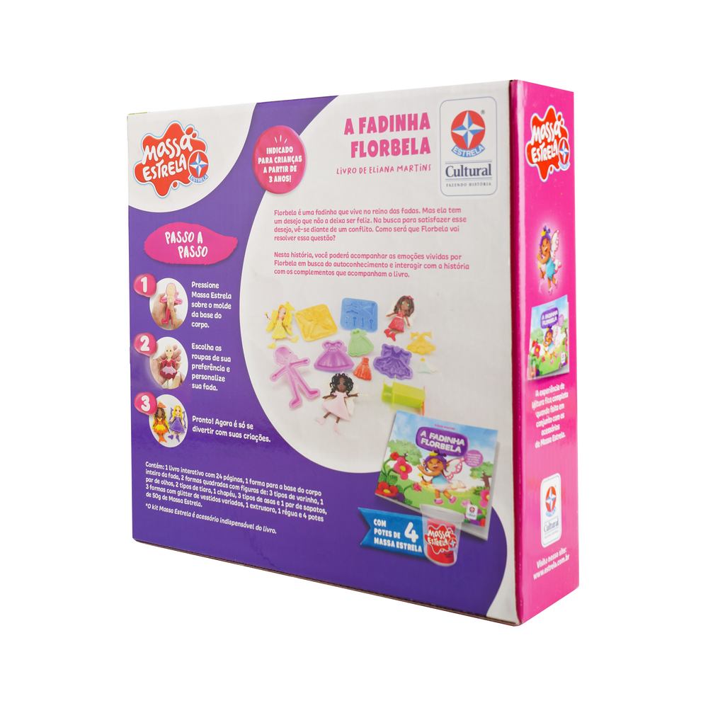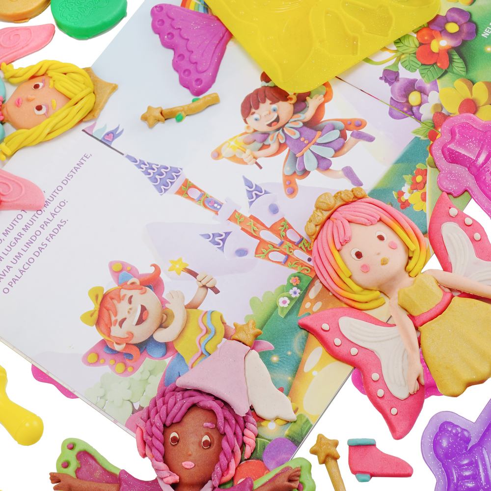 Vem com 01 molde de corpo unissex para a criança fazer com massa, encaixar os acessórios, tematizar e criar diferentes poses com o corpo feito de massinha. Vem com 3 formas de diferentes vestidos para estilizar a fada. Também vem com 02 formas com figuras de varinhas, tiaras, chapéu, sapatos e asas diferentes. A criança pode utilizar a extrusora para criar diferentes cabelos para as fadas, da maneira que preferir e vem 4 potes de 50g de Massa Estrela. Acompanha 01 livro de 24 página com o tema Fadas para a criança interagir com Massa Estrela.