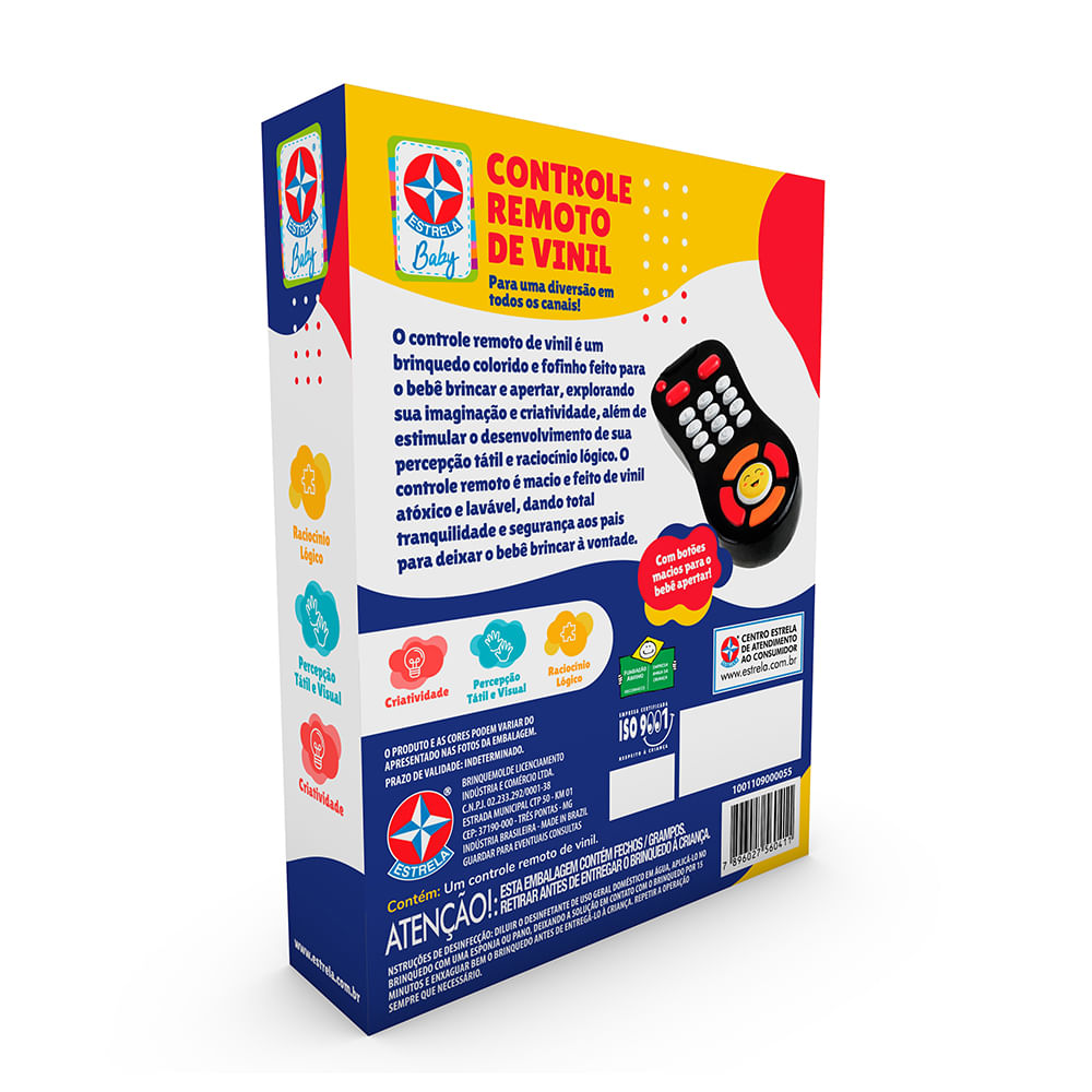Toda criança gosta de imitar os adultos e os que estão à sua volta ... para isso temos o controle remoto de vinil. Ele foi desenvolvido com vinil fofinho e formato anatômico para facilitar a brincadeira e entreter o bebe.