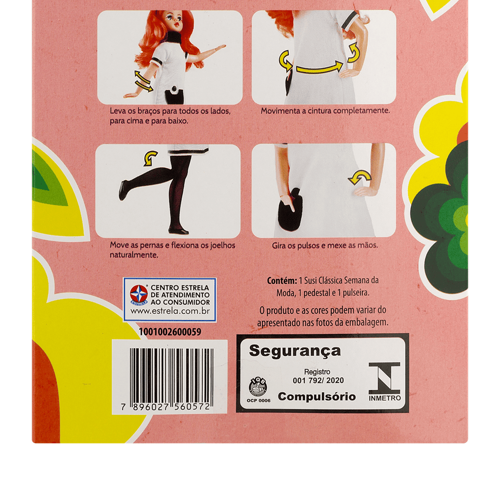 A Susi vem com o corpo "Faz todas as poses", com movimento na cintura, pulso, braços, pescoço, pernas, e joelhos flexíveis. Possui lindos cabelos longos e ruivos e olhos azuis.