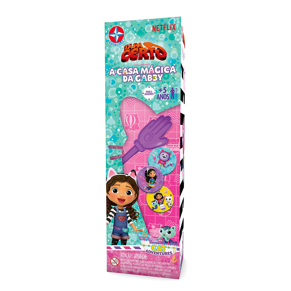 Uma versão do clássico Tapa Certo com os personagens da série de grande sucesso entre as crianças A Casa Mágica da Gabby. O jogo funciona da seguinta maneira: as cartas quadradas ficam viradas para baixo enquanto as cartas redondas ficam viradas para cima. Um jogador deve virar uma carta quadrada, revelando sua imagem, e os jogadores devem rapidamente dar um tapa na carta redonda de mesma imagem utilizando suas mãozinhas plásticas. Quem conseguir mais cartas no final do jogo é o vencedor!