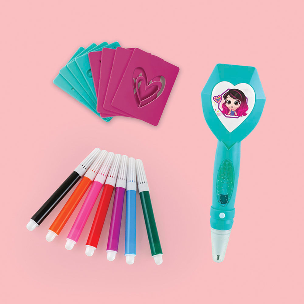 A tatuagem é uma tendência que agora pode fazer parte do mundo infantil. A Supermáquina de Tattoo da Luluca faz tatuagens fashion e que saem com água e sabonete. A máquina tem os movimentos de uma tatuadora de verdade e funciona com canetinhas de tinta lavável! São 8 opções de estênceis com temática da Luluca para a criança escolher. Basta encaixar a canetinha no interior da máquina, recolocar a tampa e apertar para tatuar. Para remover a tatuagem, lavar com água e sabonete. Podem ser necessárias várias lavagens até que a tatuagem seja completamente apagada.