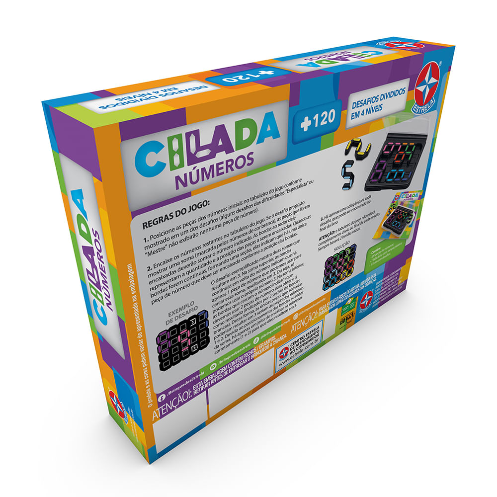 Uma nova versão do clássico Cilada, agora com números. São mais de 120 desafios divididos em 4 níveis, para testar seu raciocínio e se divertir. Escolha o nível de dificuldade que deseja, o quebra-cabeça que quer solucionar e monte as peças iniciais conforme mostra a imagem do desafio selecionado. Siga as instruções e tente vencer o desafio.