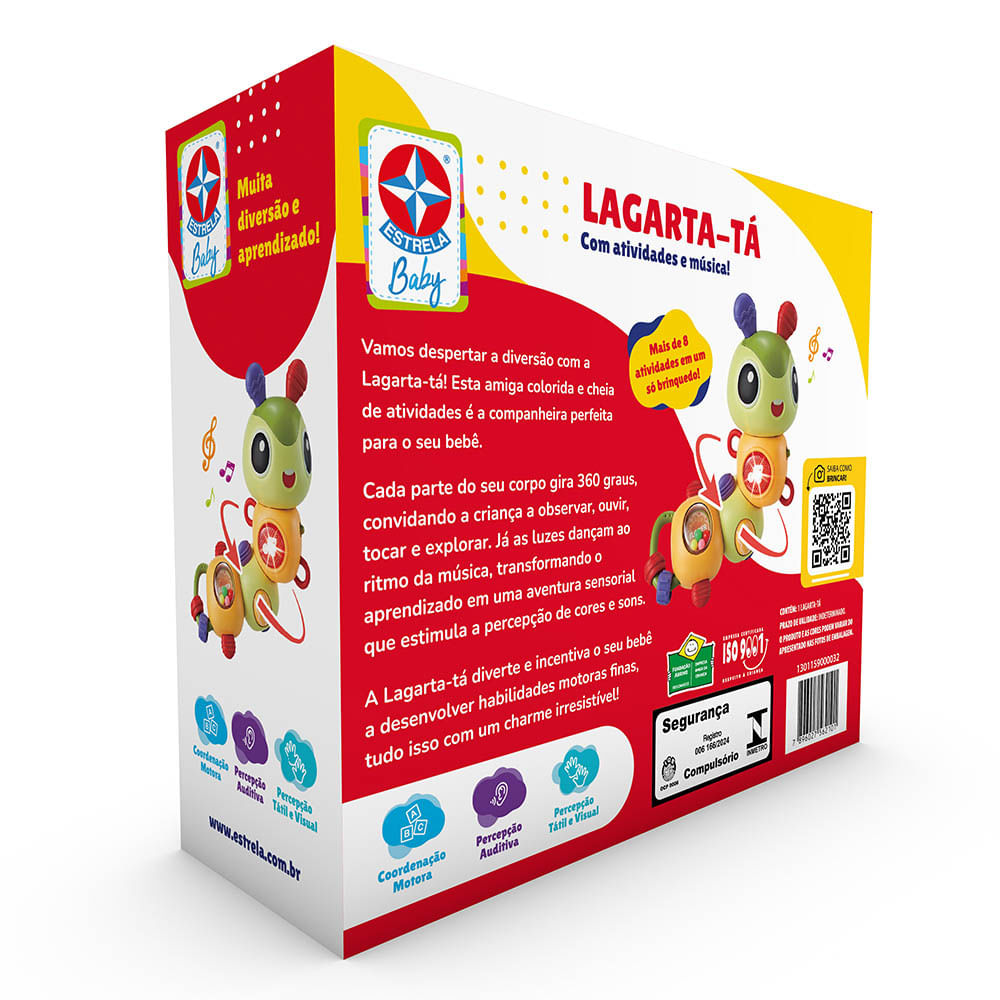 A Lagarta-tá é um brinquedo encantador que oferece uma variedade de mais de 8 atividades para as crianças! Os pequenos podem girar o corpo da lagarta para desfrutar de sons divertidos, brincar com a peça rolante para uma ação emocionante e sintonizar-se com músicas distintas que vão encher o ambiente de alegria e ritmo.
