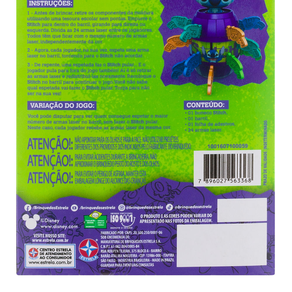 O clássico jogo de ação na sua versão do personagem Stitch, do desenho Lilo&Stitch da Disney! Uma arma laser aqui... outra ali... E de repente o Stitch pula fora do barril! Espete o barril com cuidado, porque ninguém sabe quando ele vai pular!