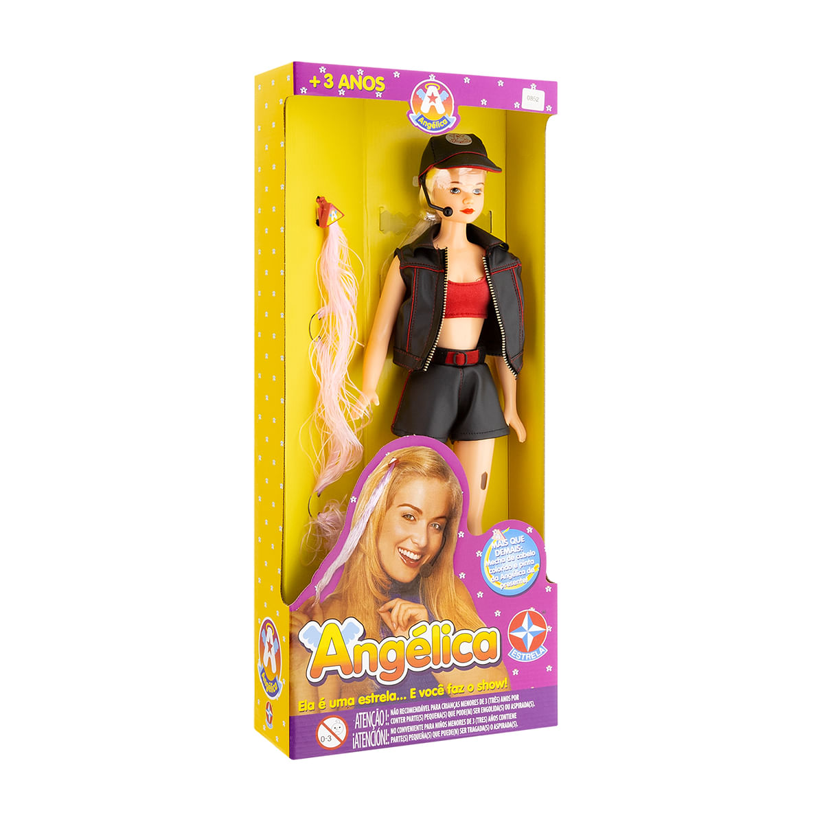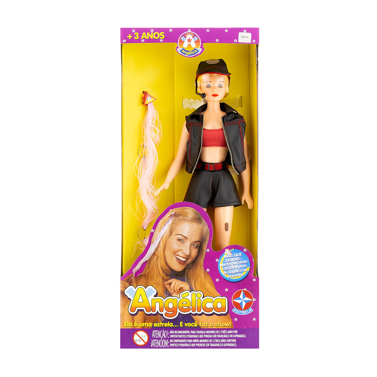 A Angélica de 1998 está de volta. Com sua roupa icônica, microfone e todo o seu charme, a apresentadora voltou pra encantar novas gerações. A boneca retrô vem acompanhada de uma cartela de tatuagens de "pintas" em referência a marca registrada da Angélica e uma mecha colorida para se utilizar no próprio cabelo.
