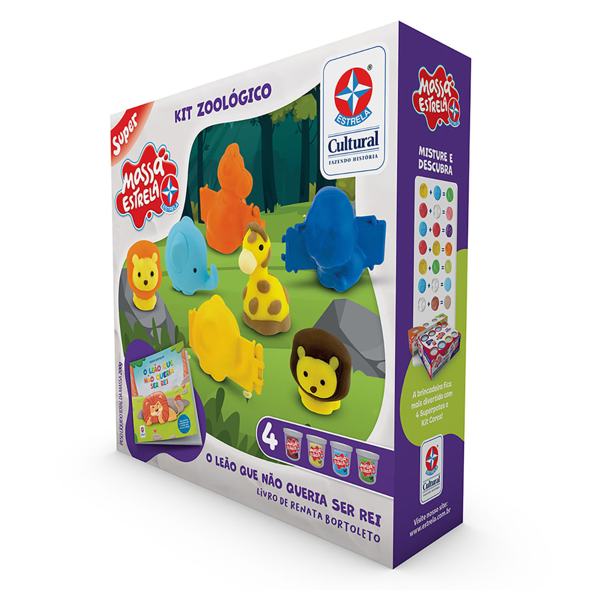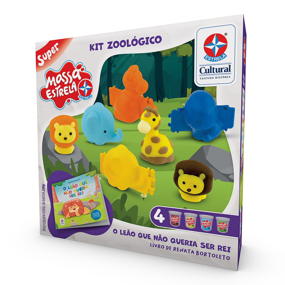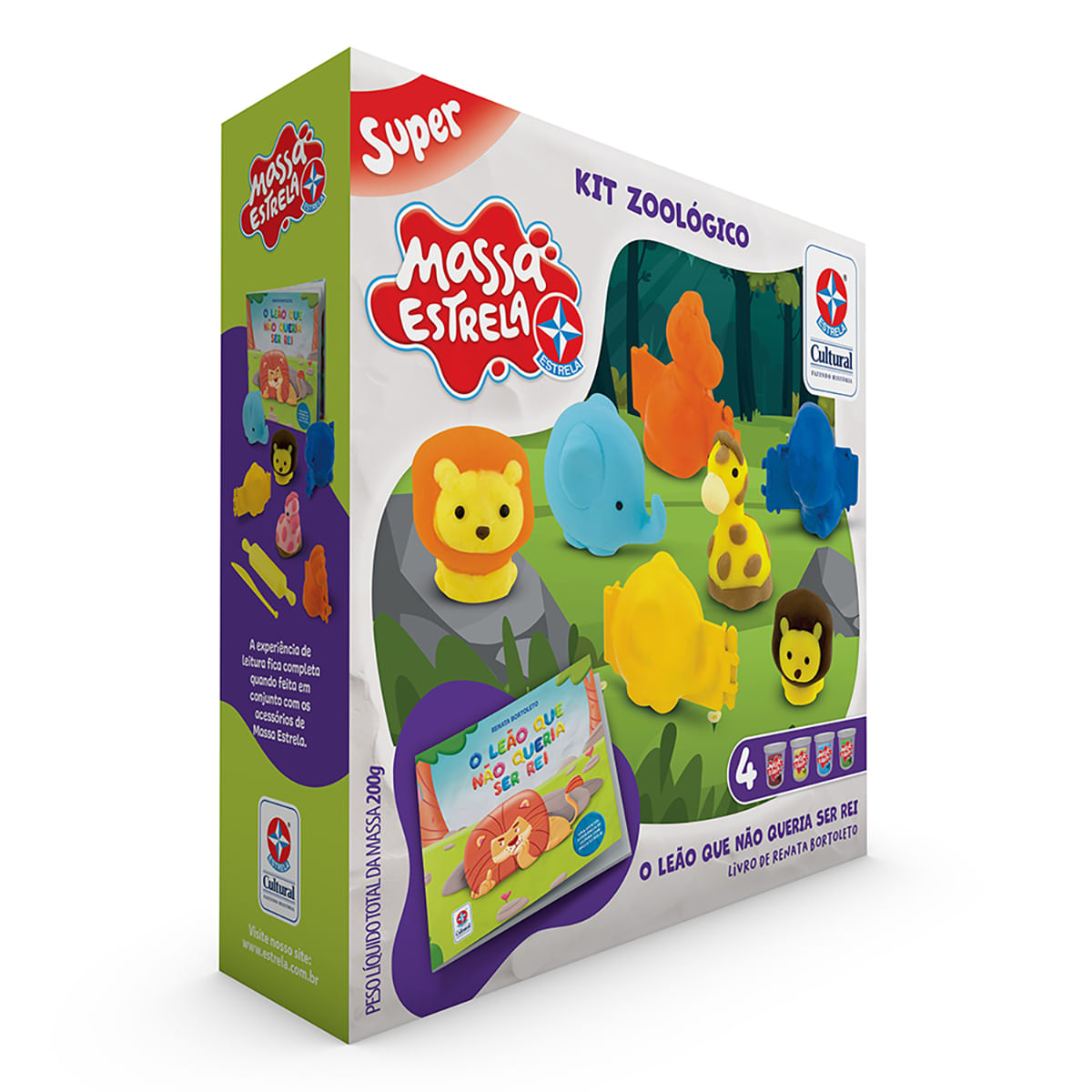O Livro O Leão Que Não Queria Ser Rei conta a história de Astrogildo, um leão que cansou de reinar sua selva. O livro acompanha 3 moldes 3D de animais, incluindo um leão, uma girafa e um elefante, faquinha, rolinho, 4 potes de Massa Estrela de 50g e um cenário cartonado.