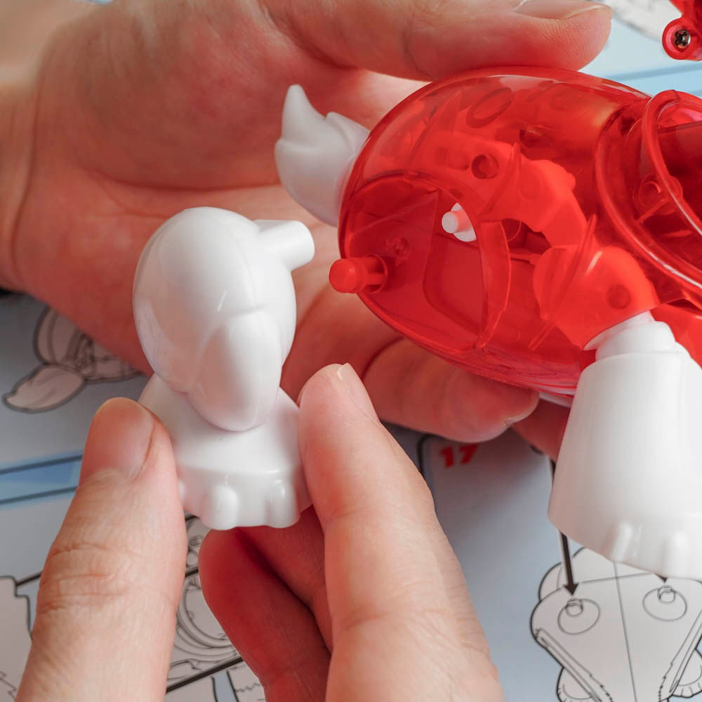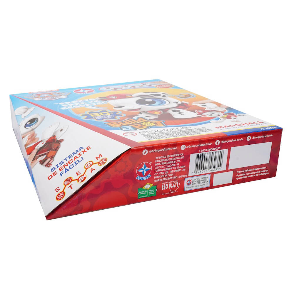 Com muita diversão trazemos a patrulha canina, brinque com o Marshall um dos principais personagens do desenho Patrulha Canina. O cachorro vem desmontado em cerca de 20 peças plásticas e com eletrônica, sendo parte da importante da brincadeira montar o seu amigo robô. Quando montado, ele obedece movimentos acionados por palmas ou por toques no rabinho, falando frases icônicas de seu personagem e pulando! O brinquedo também é customizavel, vindo com uma cartela de adesivos para a criança decorar como quiser.