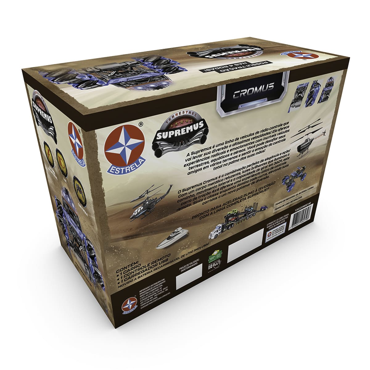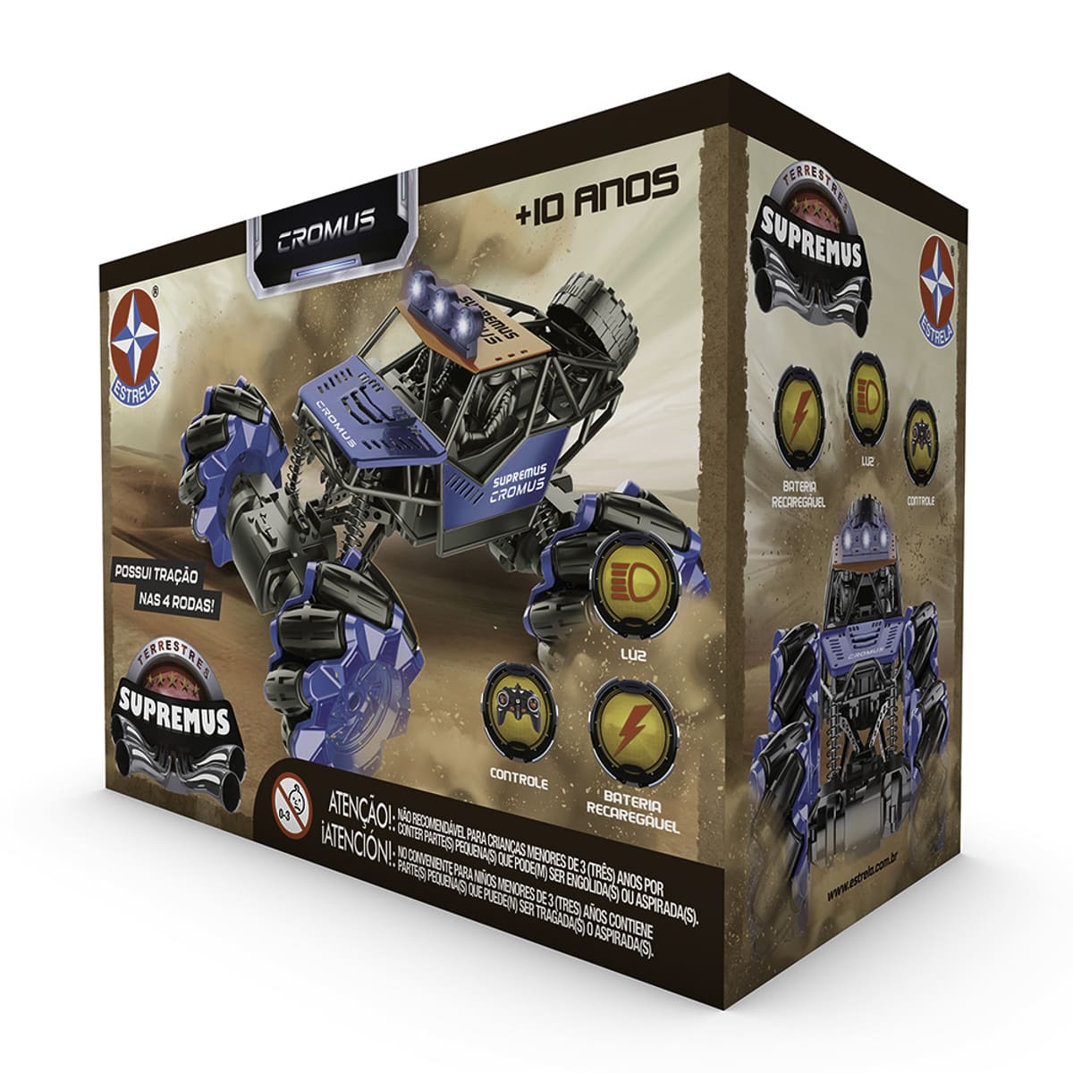 O Supremus Cromus é um carro de controle remoto movido a bateria recarregável.