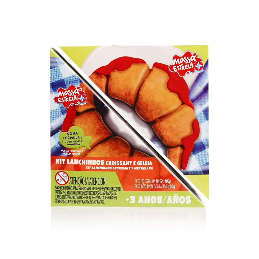 Massa Estrela Kit Lanchinhos vem com 100 g de massa e 1 molde de croissant e geléia para tornar a brincadeira super apetitosa e divertida!