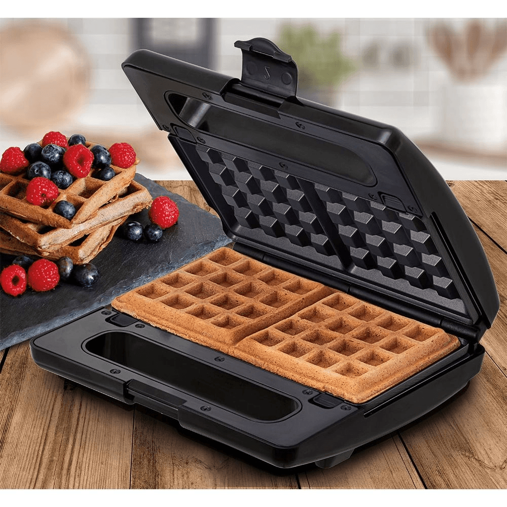 O cardápio de sua cozinha mais atraente com grelhados e waffles preparados no grill 2 em 1. Fácil limpeza acompanha chapas removíveis com revestimento antiaderente para preparar grelhados e waffles. Aquecimento automático em ambas as chapas para um tostado mais uniforme e gostoso. Luz laranja acesa indica que o produto está ligado na tomada. No momento em que a luz verde acende, o aparelho está pronto para ser utilizado. Já a luz verde oscilando indica que o alimento está em aquecimento.
