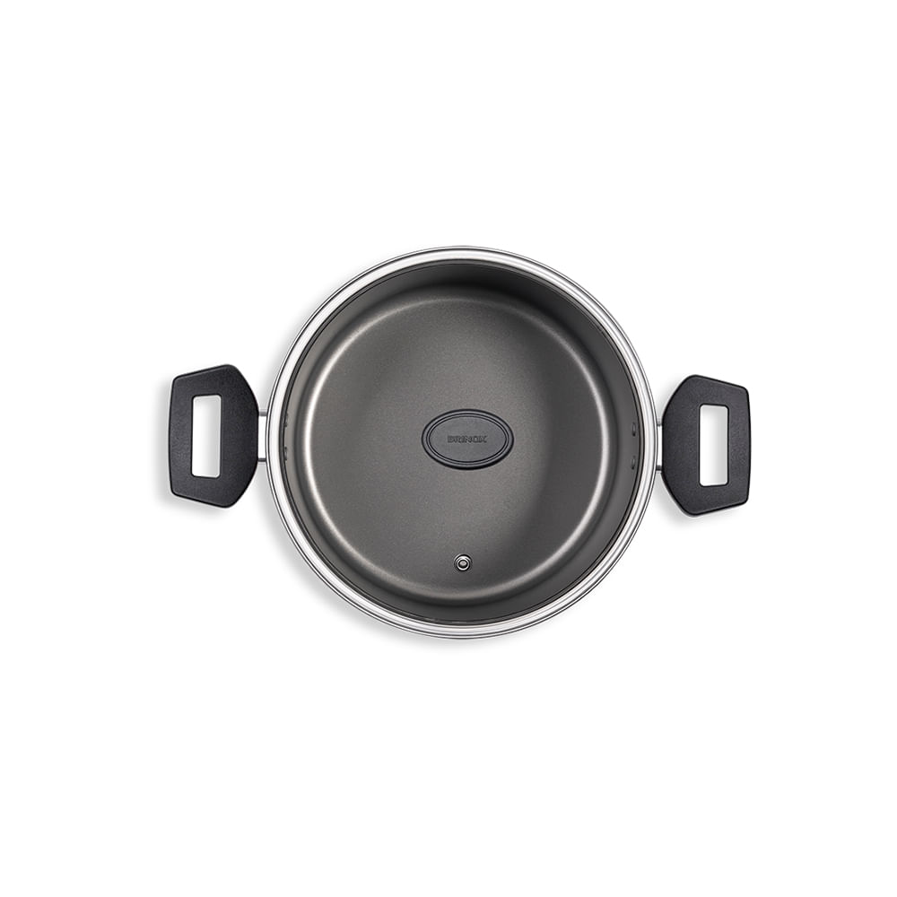 Prática e segura, a caçarola da linha Garlic, de 22x10 cm com capacidade de 3,4 litros, tem estrutura de alumínio que dissipa melhor o calor cozinhando o alimento por igual e mais rapidamente. Já o revestimento interno antiaderente não deixa o alimento grudar mesmo com uso reduzido de óleo. O material também facilita a limpeza. A tampa é de vidro temperado e possui saída para o vapor. Com cabos de braquelite, material que não aquece, o manuseio do utensílio fica mais fácil e seguro. A pintura externa é vermelho.