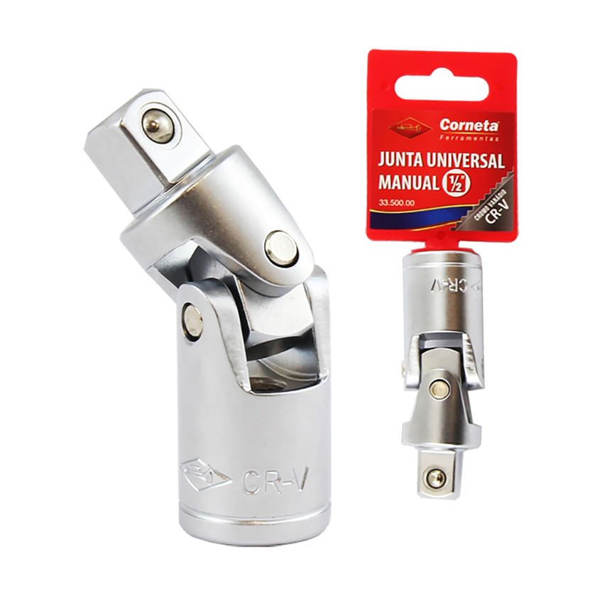 JUNTA UNIVERSAL MANUAL1/2” - Dimensões da Peça: 7,5 x 2,3 x 2,3cm - Dimensões da Embalagem: 4,5 x 2,3 x 14cm- - Dimensões Inner: 16 x 15,6 x 7,5cm - Dimensões Master: 32,2 x 17,5 x 16cm- Material: Aço Cromo Vanádio - Cor: Prata- Tipo de Embalagem: Suporte- Marca: Corneta- Origem: Fabricado na China sob supervisão técnica Corneta Ferramenta do Brasil- Contém: 1 Unidade- Características: