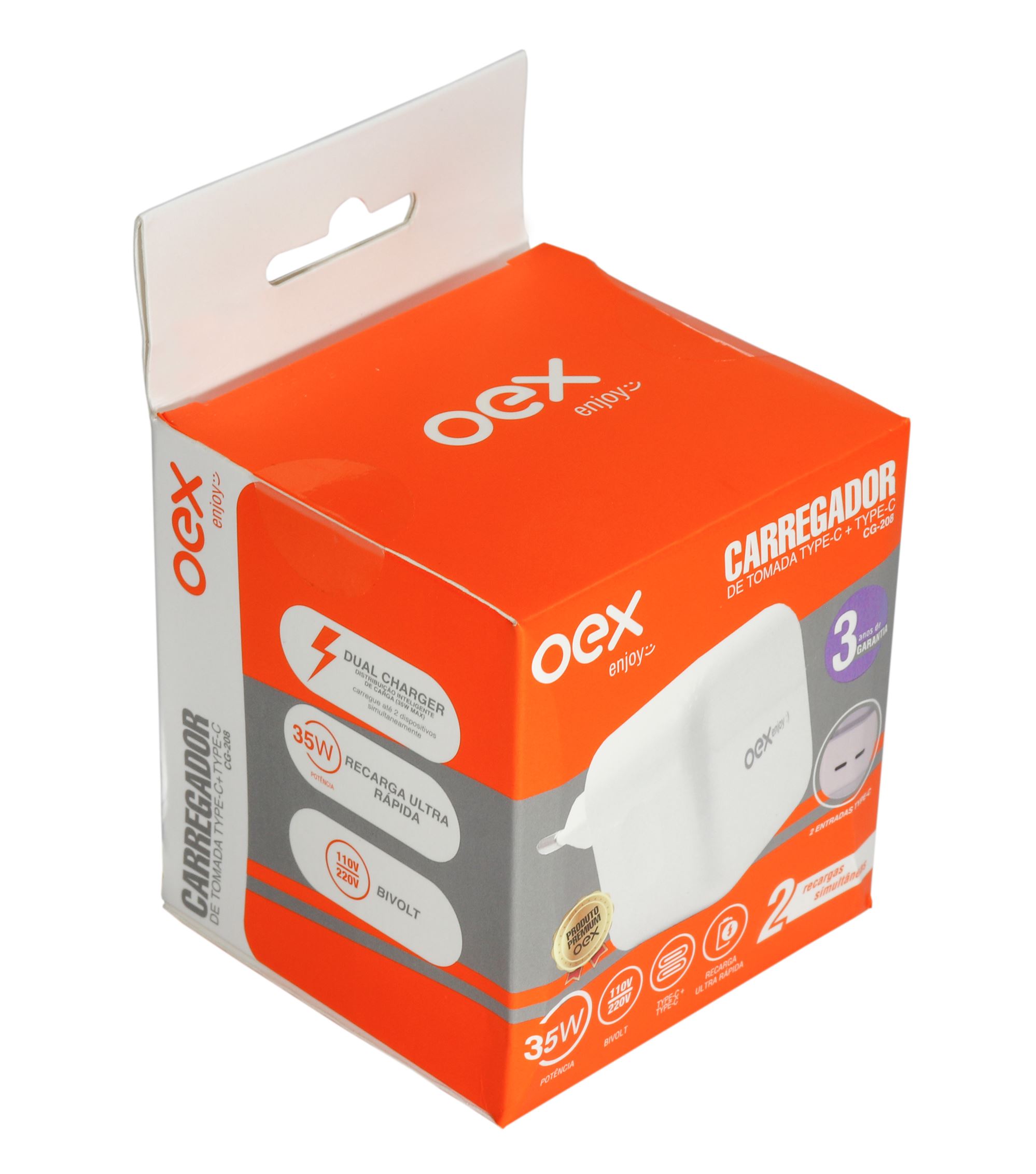 Carregador De Celular 2 Entradas Tipo C 35W Branco Cg208 OEX