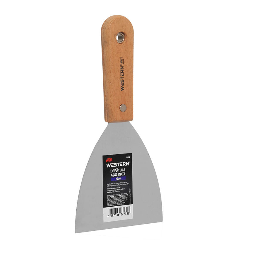 ESPÁTULA AÇO INOX 10CM - Dimensões da Peça: 21 x 10 x 1,7cm - Quantidade Inner: 12 Peças - Dimensões Inner: 22,2 x 13,1 x 4,7cm - Quantidade Master: 240 Peças - Dimensões Master: 47 x 28 x 26,5cm - Material: Aço inox, madeira - Cor: • Cabo: Marrom • Lâmina: Prata - Tipo de Embalagem: Saco plástico com Etiqueta - Marca: Western - Origem: China - Contém: 1 unidade - Cuidados: • Utilize equipamentos de proteção individual. • Manter fora do alcance das crianças. - Sac Fornecedor: • Sac: 0800 607 1322 • E-mail: posvendas@etilux.com.br • Site: www.etilux.com.br - Garantia: • Em condições normais de uso, este produto tem garantia de 90 dias contra defeitos de material e fabricação, mediante apresentação da nota fiscal de compra. Má conservação, manuseio inadequado, quedas ou quaisquer outras avarias produzidas pelo uso incorreto, a garantia oferecida perde a validade.