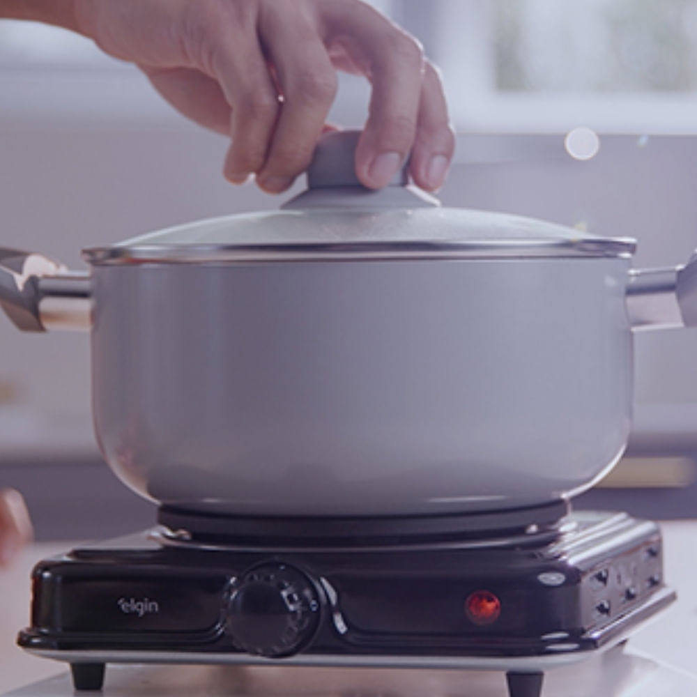 Compacto e versátil: perfeito para usar em qualquer lugar. 5 ajustes de temperatura para maior controle no cozimento. Marca renomada Elgin, sinônimo de qualidade e confiabilidade.
