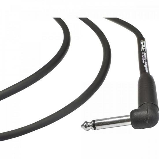 Cabo para instrumentos musicais e interligação de outros equipamentos. Fabricado com liga de cobre OFHC e Bitola de 0,20mm² / 24AWG (E20). Montado com conectores P10 x P10 90º(MOD. P10PLL) usinados