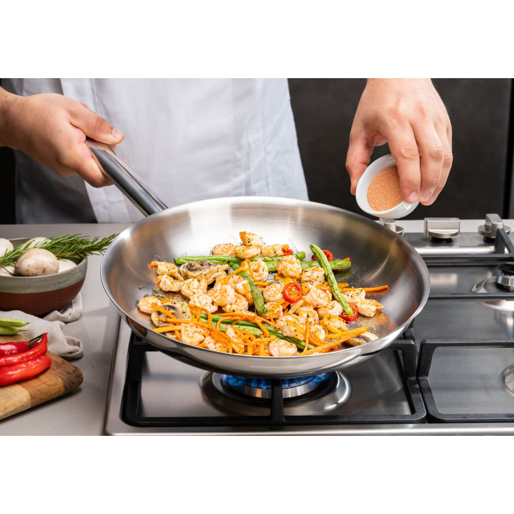 Ideal para cozinhas profissionais e domésticas, esta frigideira Tramontina de 30 cm (2,9 L) é perfeita para frituras, refogados e molhos. Seu fundo triplo assegura aquecimento rápido e uniforme, otimizando o cozimento e a economia de energia.