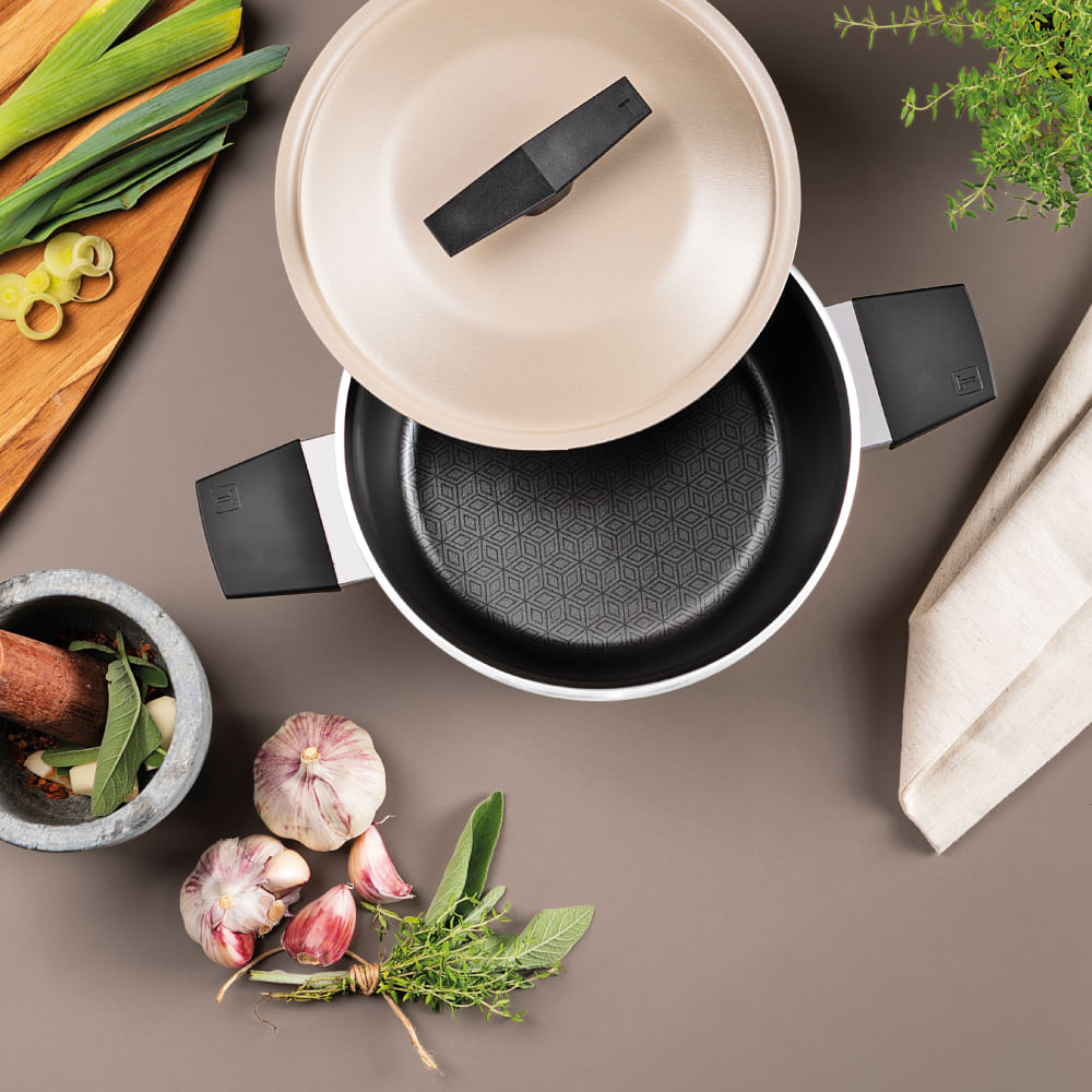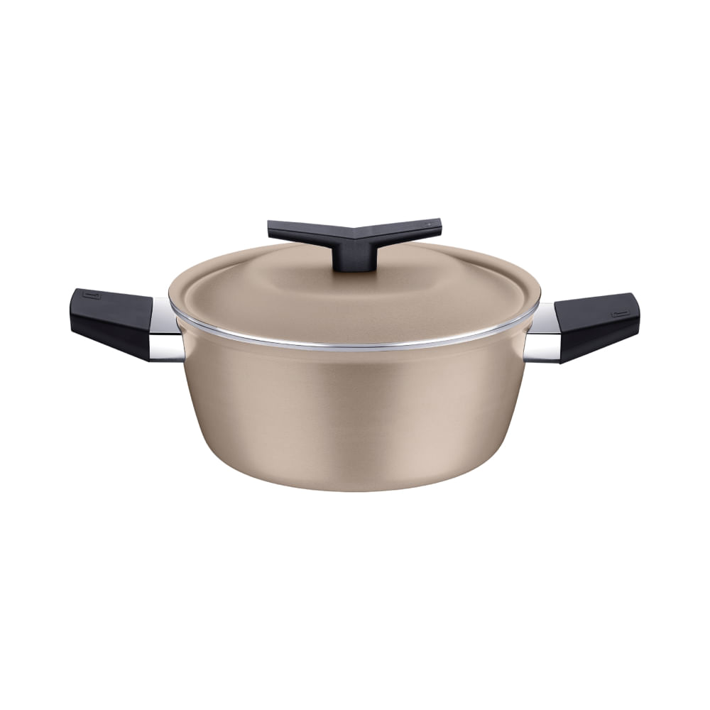 Desenvolvida para a culinária moderna, esta caçarola combina alumínio durável e fundo de indução, sendo perfeita para todos os tipos de fogões. A cor Areia adiciona sofisticação, e o tamanho de 20 cm é ideal para pratos variados para toda a família.