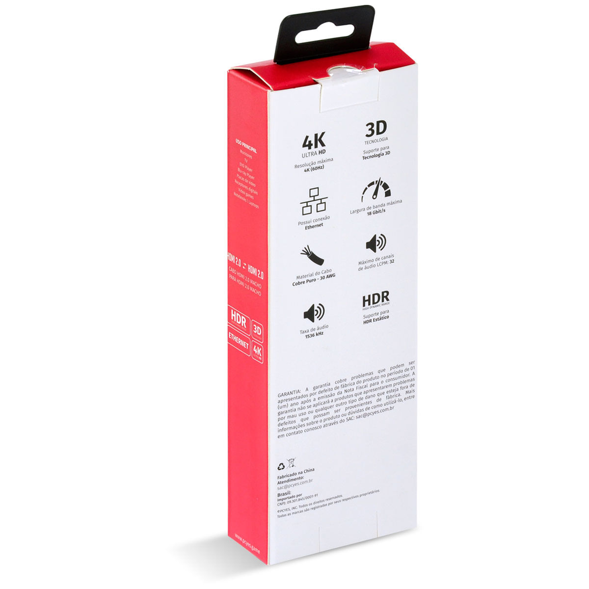 Cabo HDMI 2.0 4K 50cm Puro Cobre PCYes 1