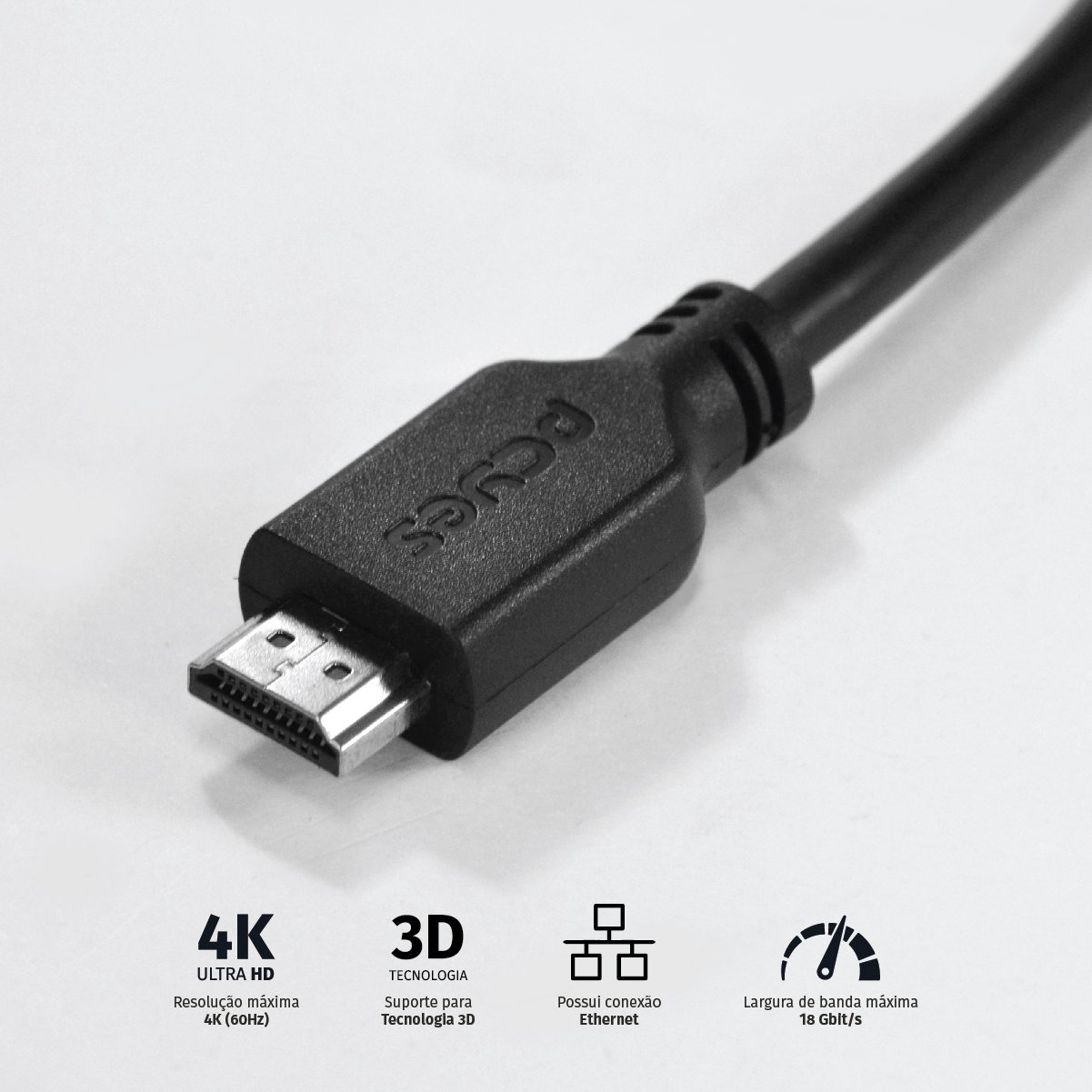 Nome: CABO HDMI 2.0 4K 30AWG PURO COBRE 2 METROS - PHM20-2