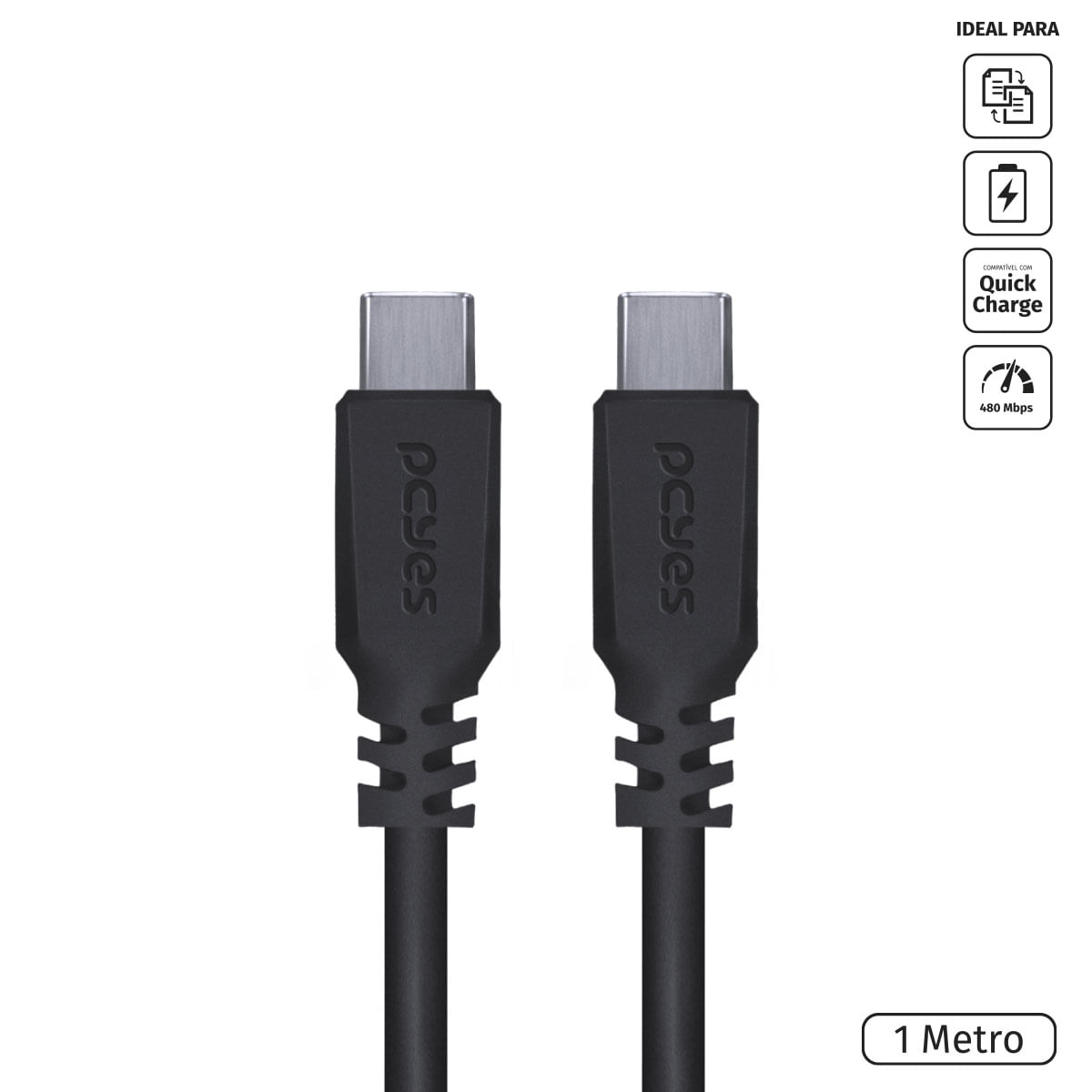 Cabo USB C 2.0 para Celular 1m Preto PCYES