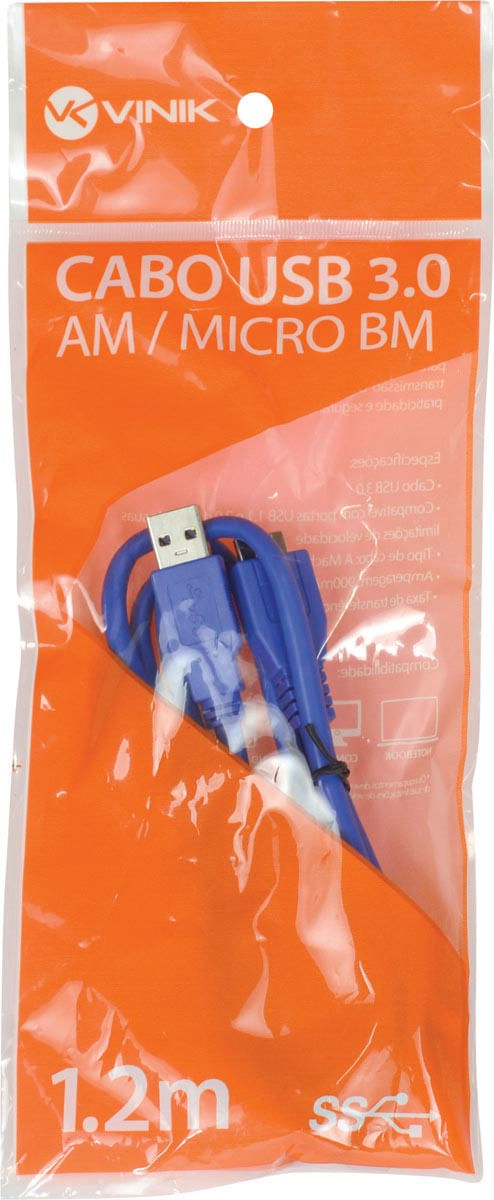 O Cabo USB 3.0 Vinik A Macho x Micro USB B Macho de 1.2 metros é a solução ideal para conectar HDs externos e dispositivos compatíveis. Projetado para transferência de dados rápida e estável, garante que seus arquivos sejam movidos com agilidade e segurança.
