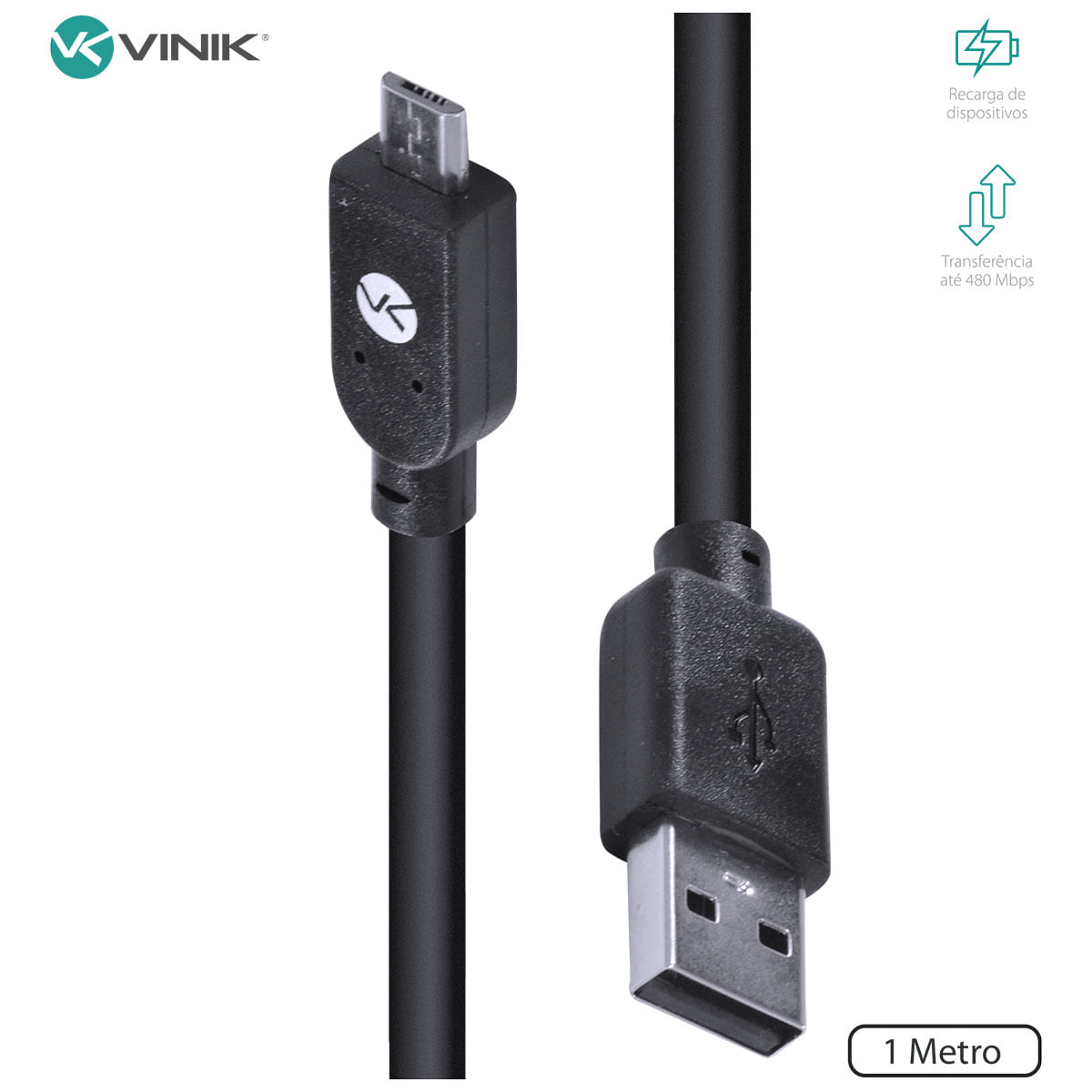 Cabo USB Micro USB B 20 5 Pinos 1m Preto MUSB1 VINIK
