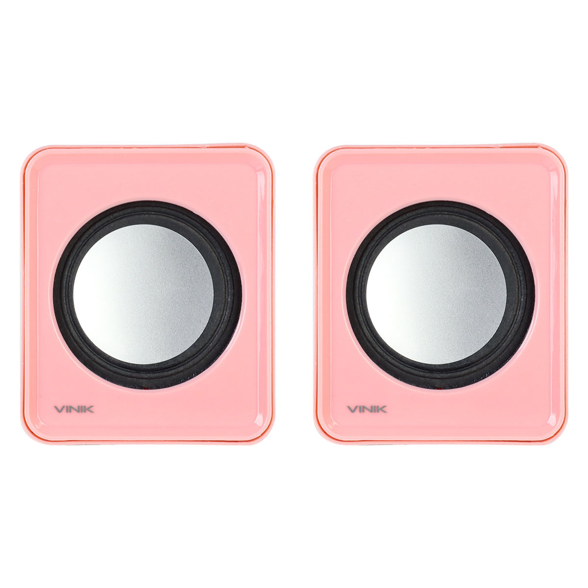 Caixa de Som 2.0 USB 2W Rosa Controle Volume Vinik