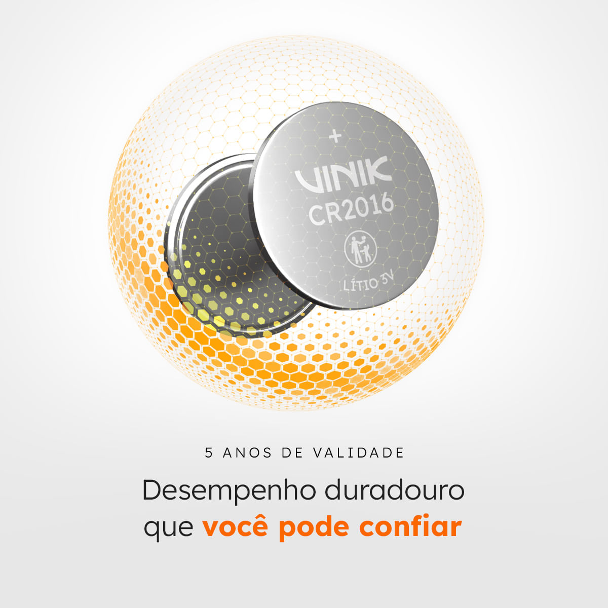 A bateria CR2016 é uma escolha excelente para eletrônicos que exigem uma fonte de energia compacta e duradoura. Perfeita para controles remotos, calculadoras, relógios, brinquedos pequenos e dispositivos médicos portáteis, a Vinik VB16B5 assegura desempenho estável e longevidade.