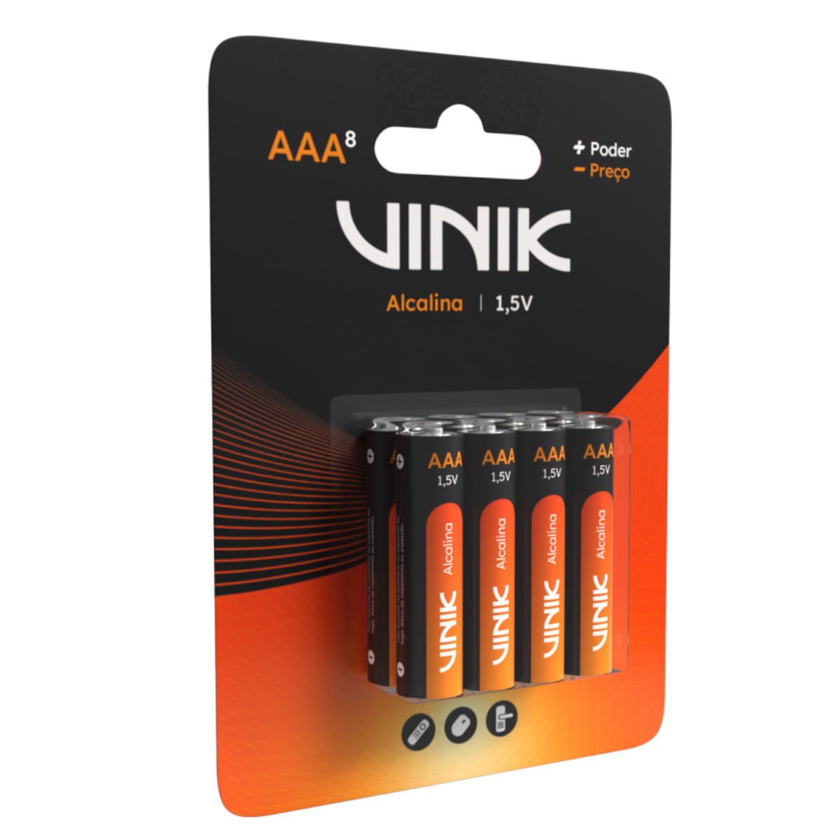 Pilha Alcalina AAA Vinik 1.5V 8 Unidades