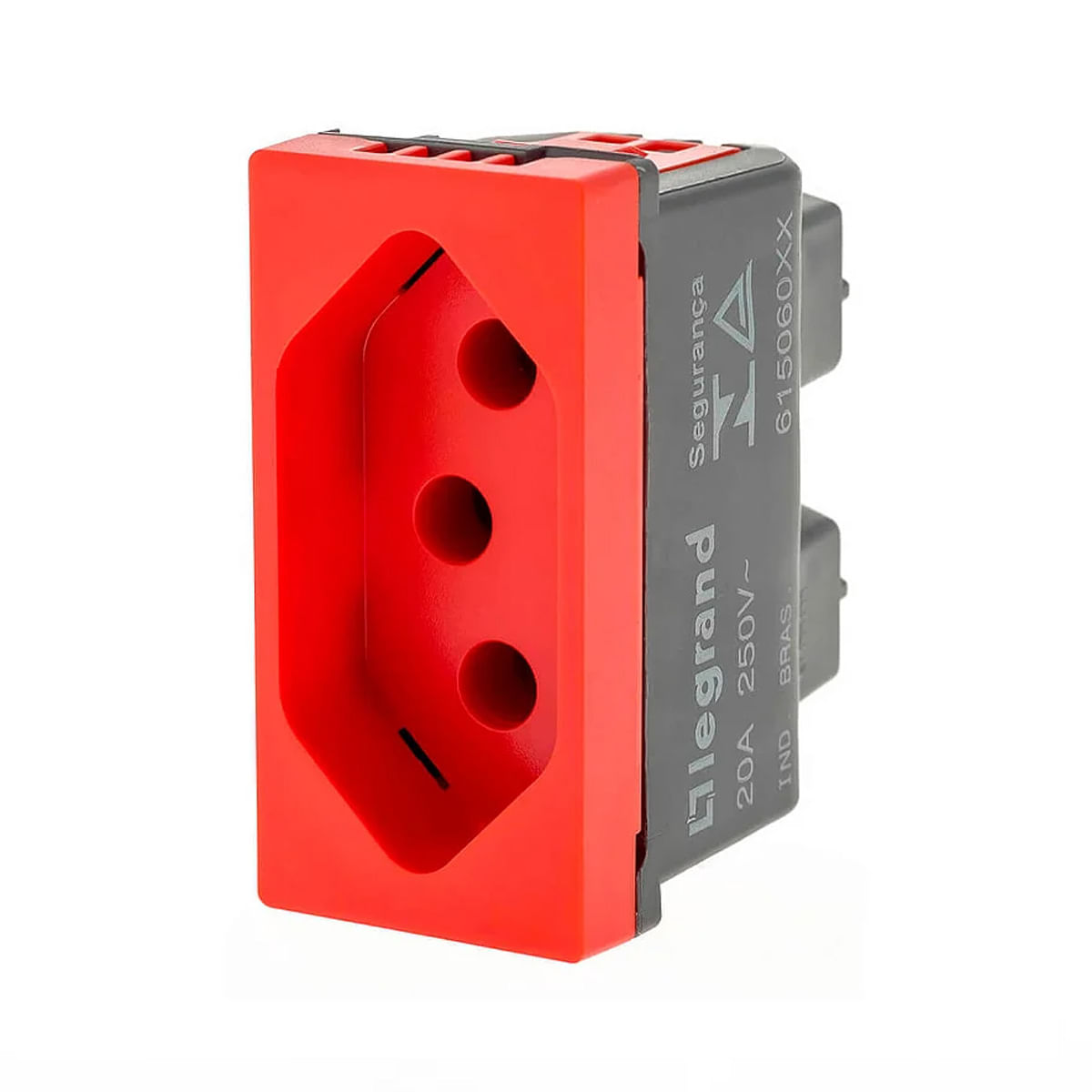 Com capacidade para 20 amperes e 250 volts, esta tomada é perfeita para equipamentos de maior consumo, garantindo operação segura e estável. Sua cor vermelha permite fácil identificação em circuitos específicos, otimizando a organização da instalação.