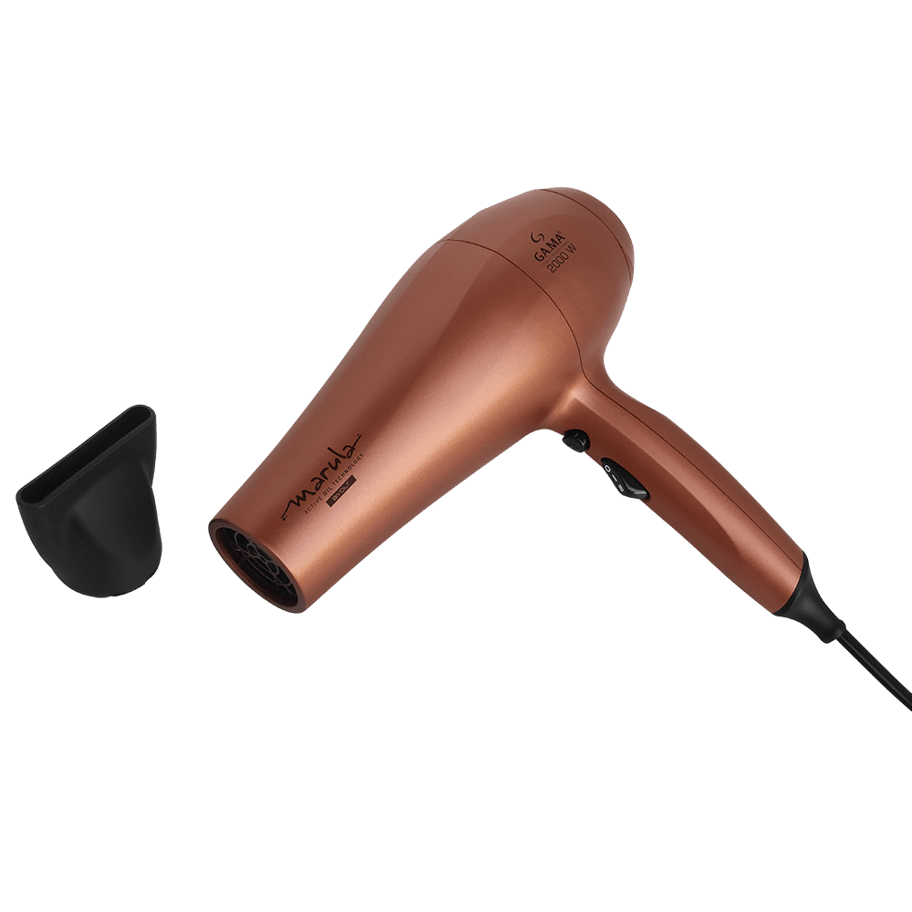 O Secador de Cabelo GA.MA Italy Marula Ceramic Ion possui a tecnologia Essential Oil com óleo de Marula, que é liberado durante o uso. Esse poderoso antioxidante protege os fios do calor, previne pontas duplas e garante uma hidratação profunda, resultando em cabelos visivelmente mais belos, iluminados e sem frizz.