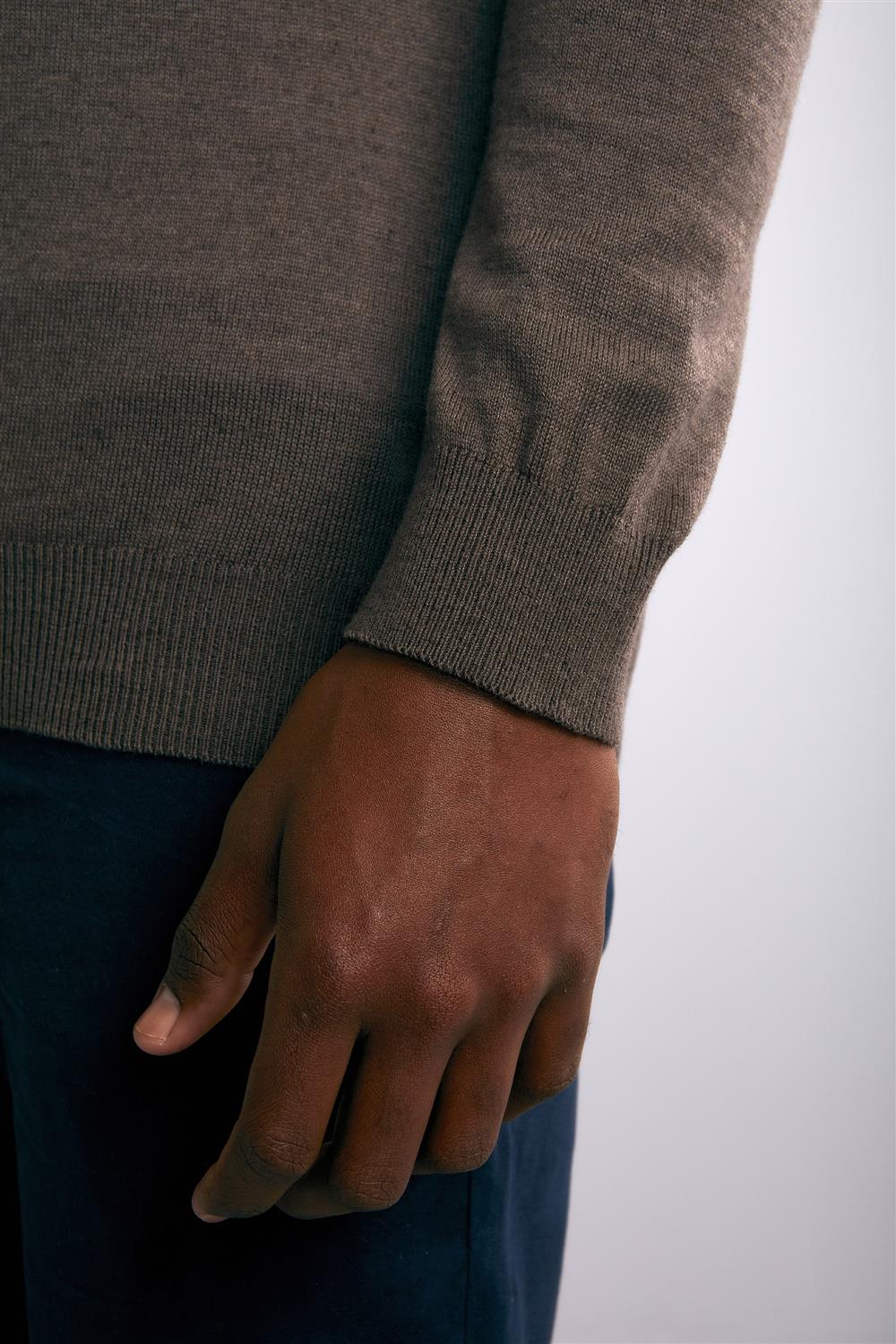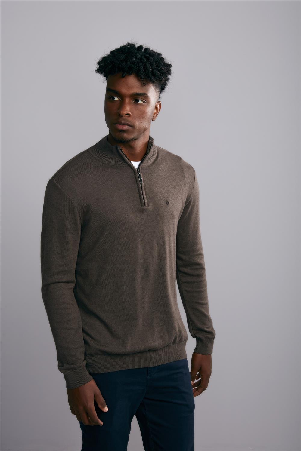 Tricot Gola 1/2 Zíper Slim Fit - Marrom Café