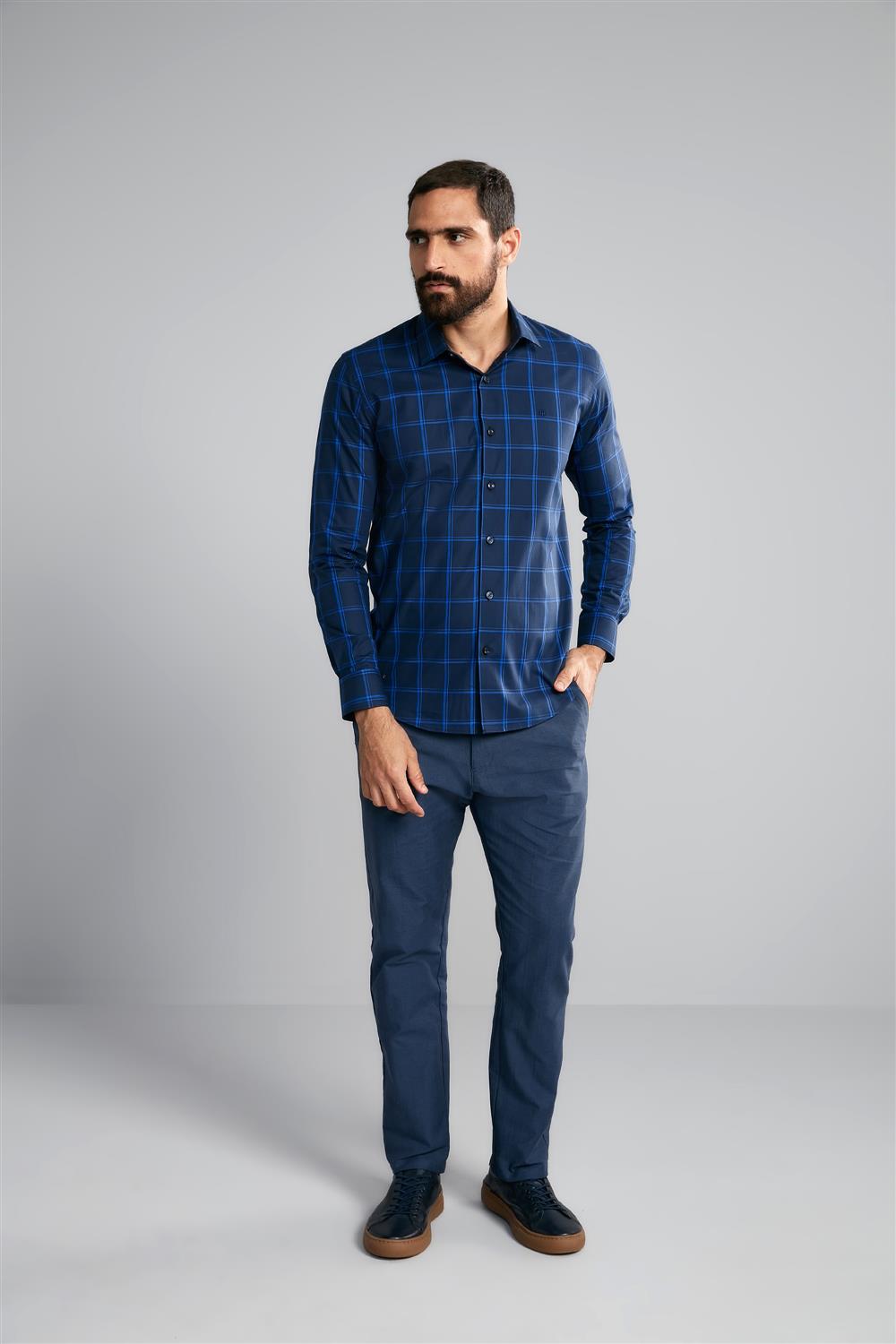 A Camisa Manga Longa Fio Tinto Slim Fit é composta por 100% Algodão e é produzida em tecido Fio Tinto, ou seja,os fios recebem o tingimento antes da produção, o que ajuda a criar diversas padronagens como xadrez, listras e maquinetados, trazendo um estilo único para a peça.