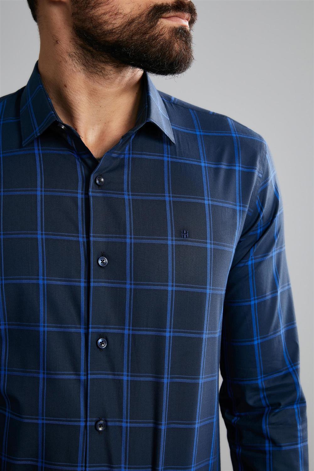 Camisa Manga Longa Fio Tinto Slim Fit- Azul Marinho