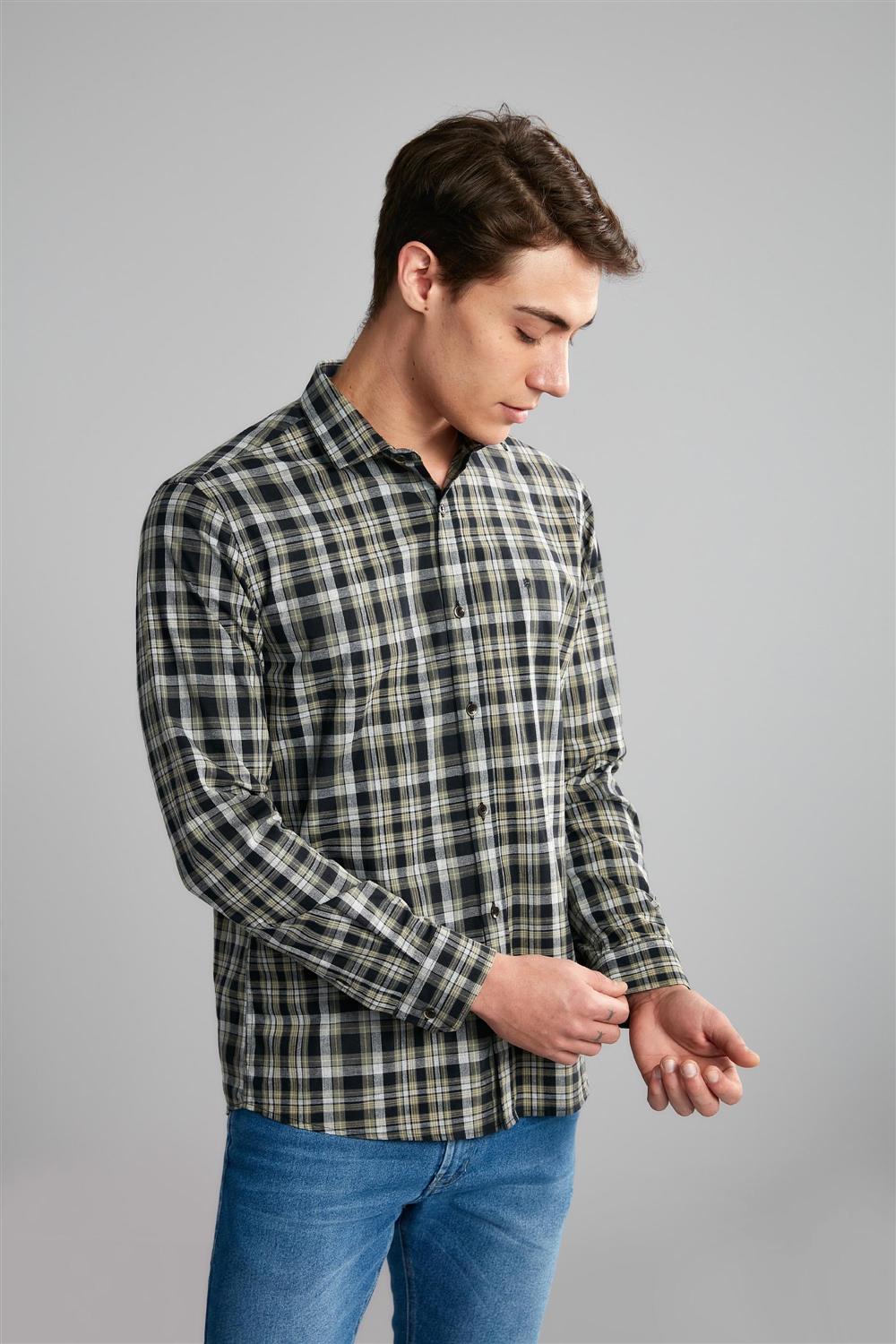 Camisa Manga Longa Xadrez Slim Fit - Preto