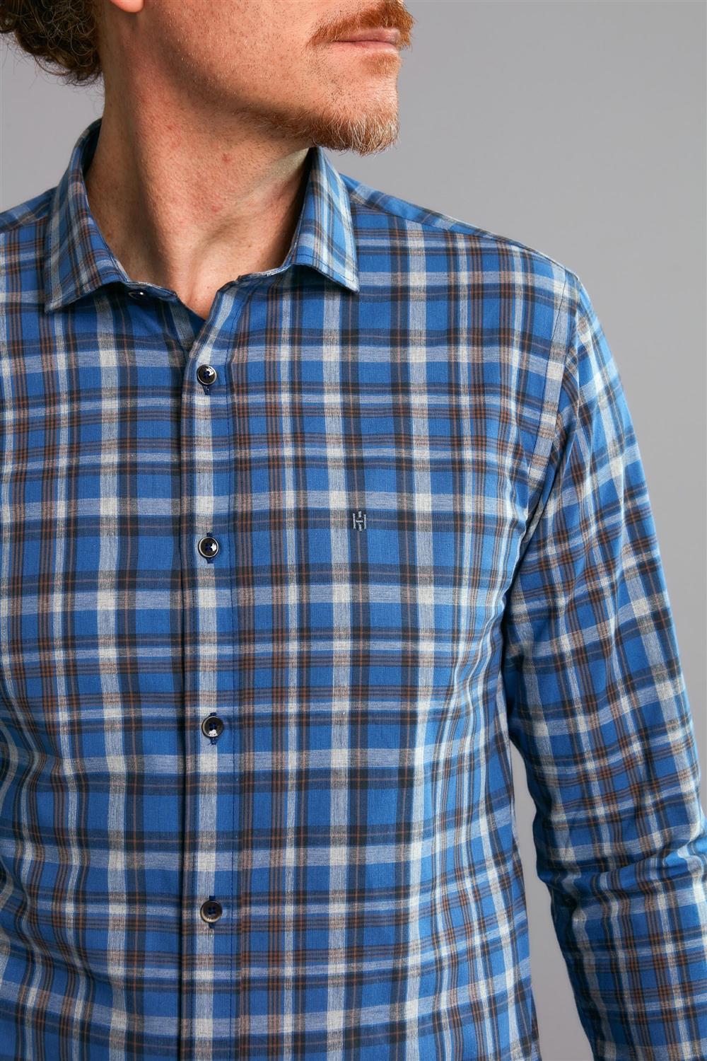 Camisa Manga Longa Xadrez Slim Fit - Azul Medio