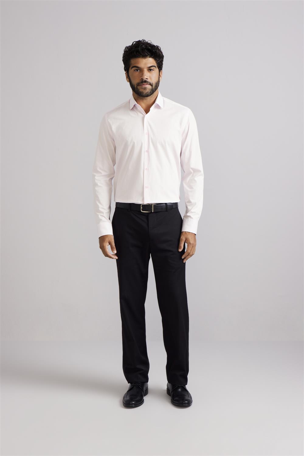 A Camisa Social Comfort é composta por 100% Algodão. A peça conta com colarinho New York, com 3,5 cm de pé de gola, 6 cm de ponta, 10 cm de abertura e pesponto de 0,5 cm, que traz um formato moderno e bem-posto ao homem.
