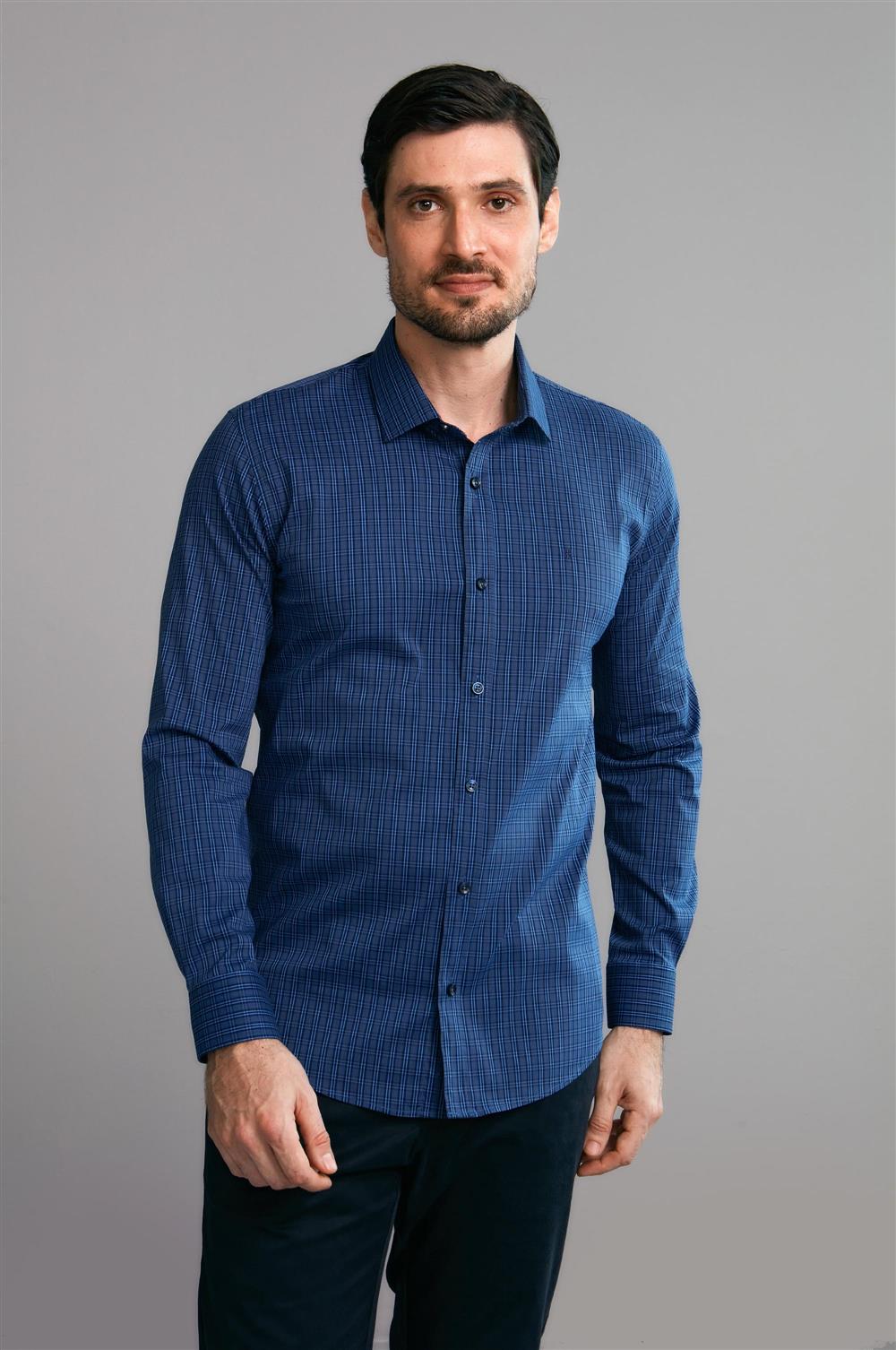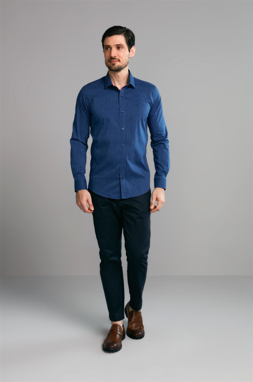 Camisa Manga Longa Fio Tinto Slim Fit - Azul Marinho