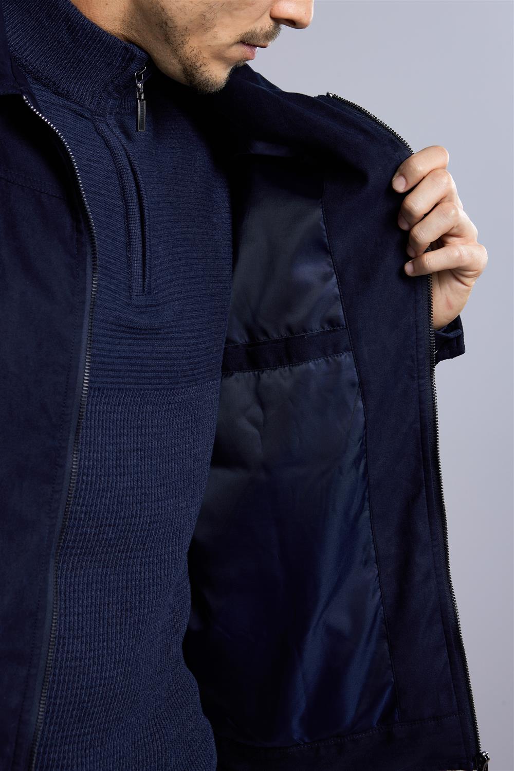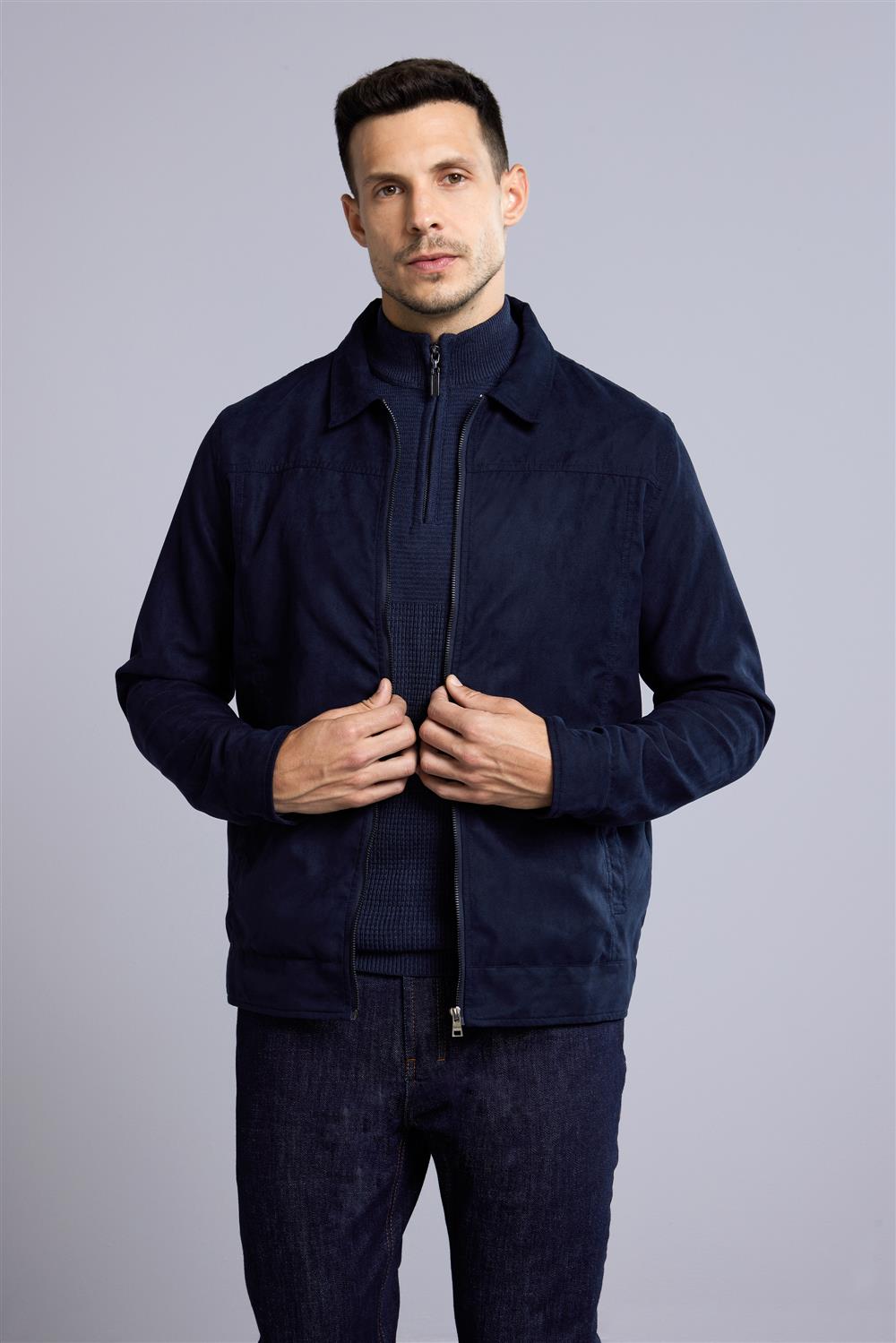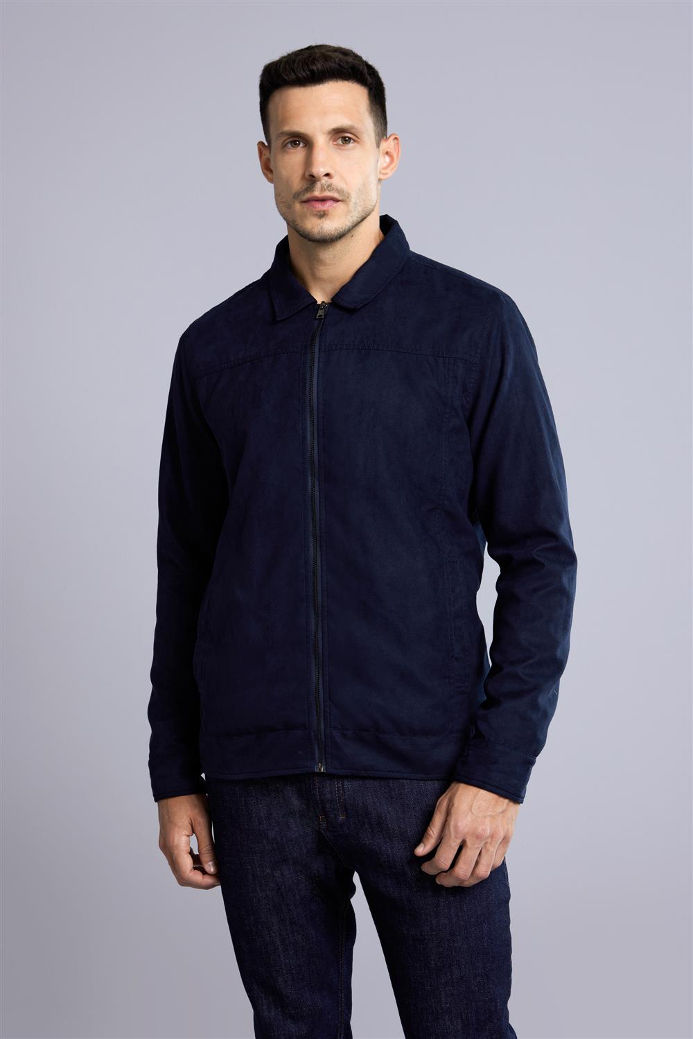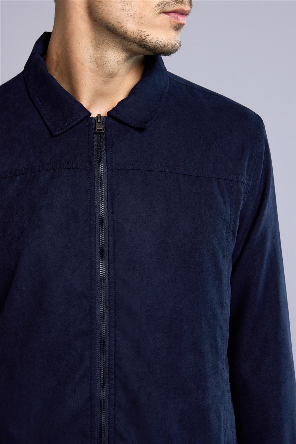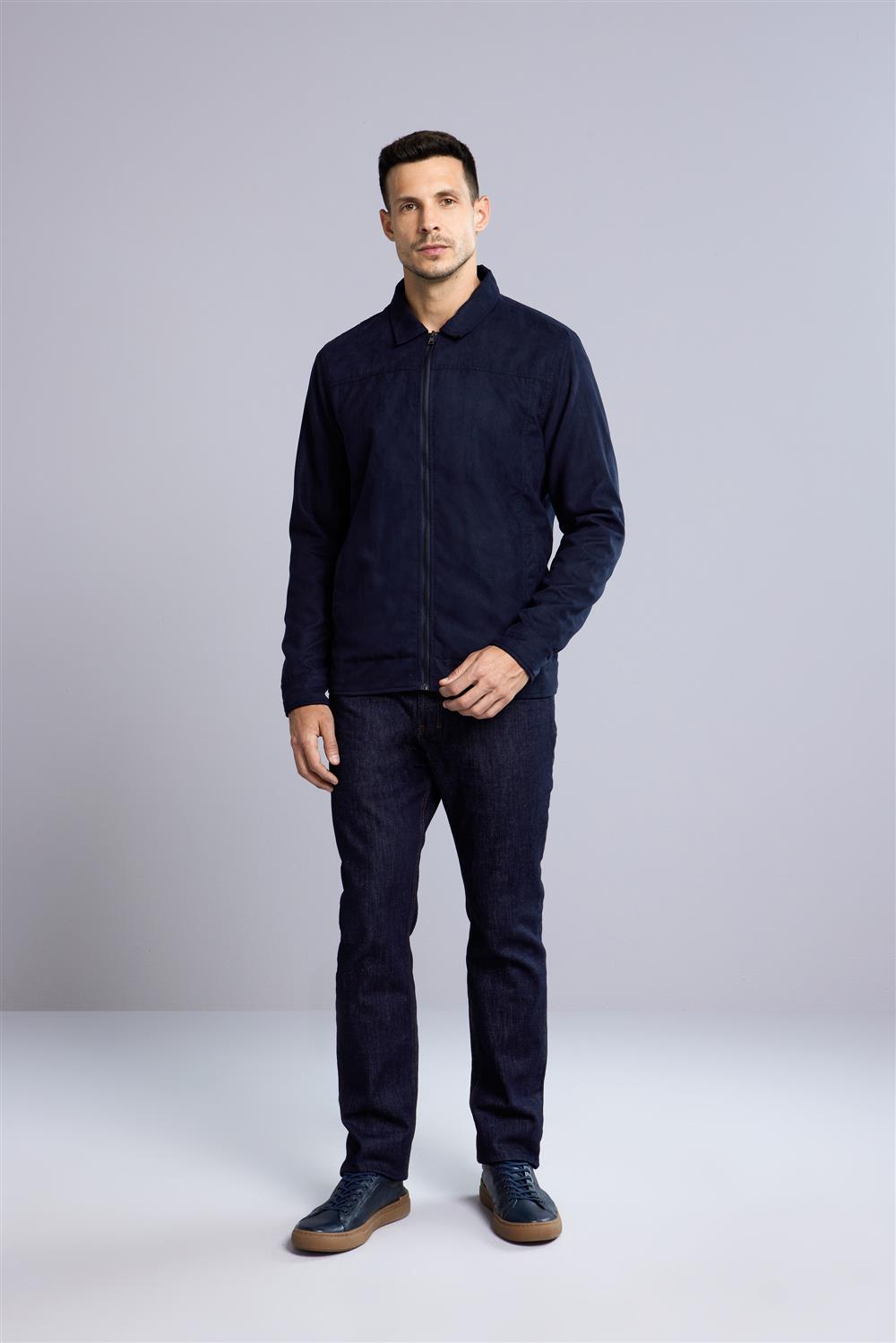 Jaqueta Trucker com Zíper Suede - Azul Marinho