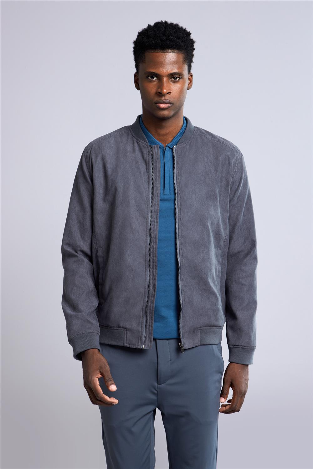 Jaqueta Bomber com Zíper Suede - Cinza Chumbo