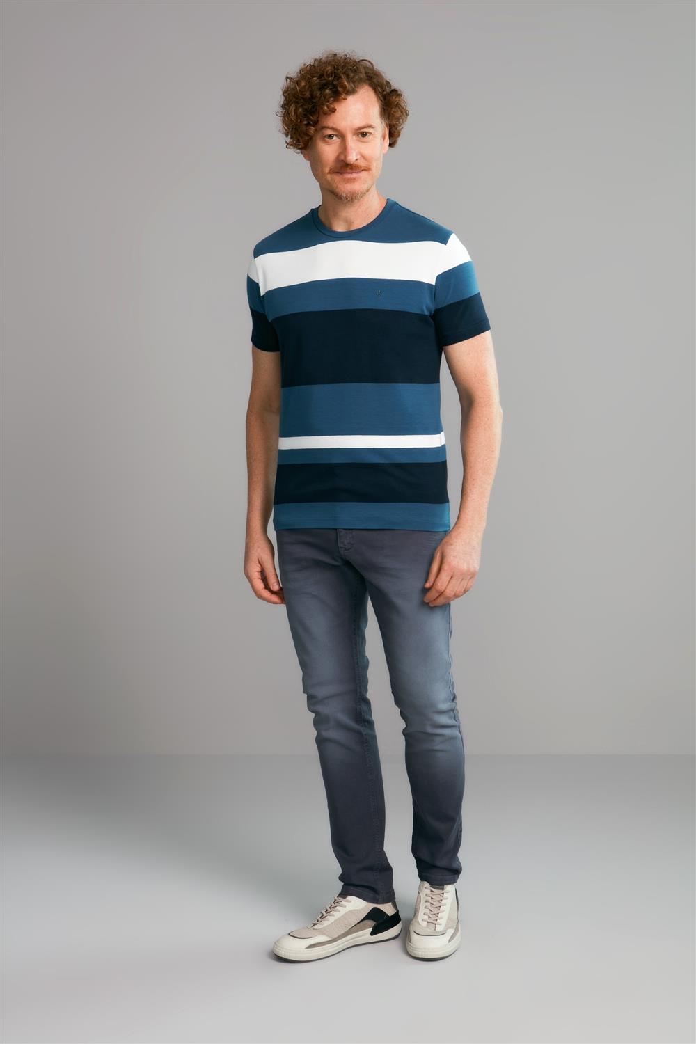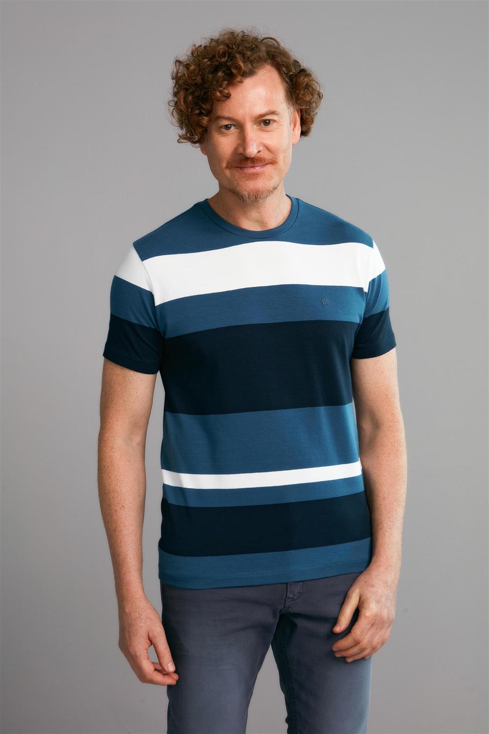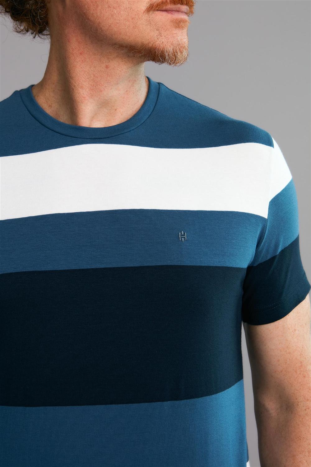 Camiseta Manga Curta Malha Slim Fit - Azul Medio / Azul Marinho