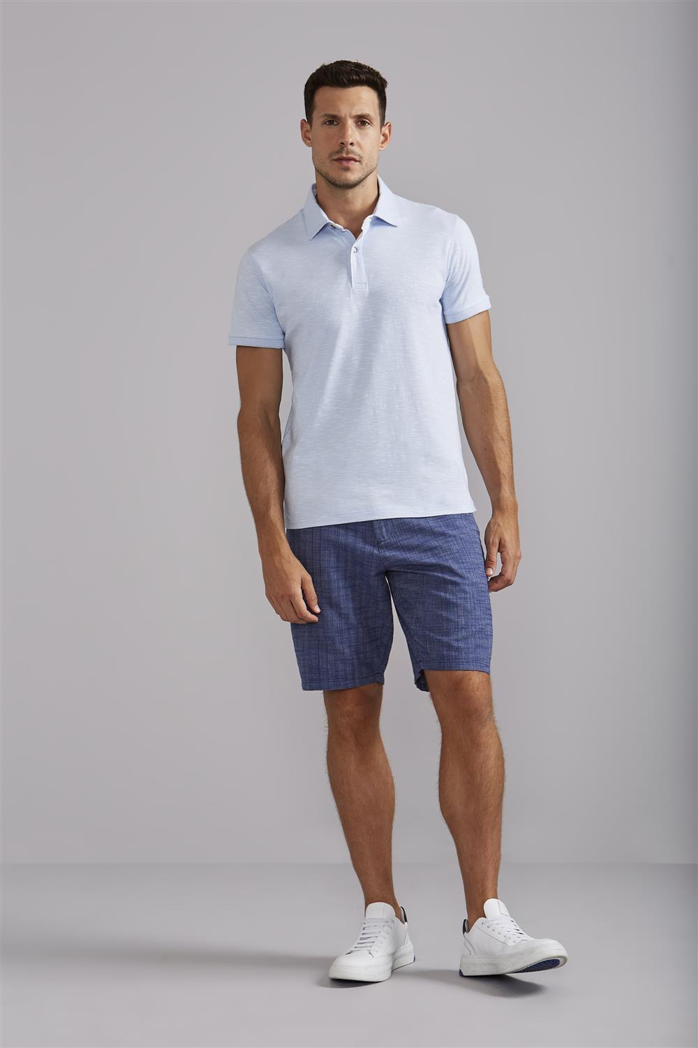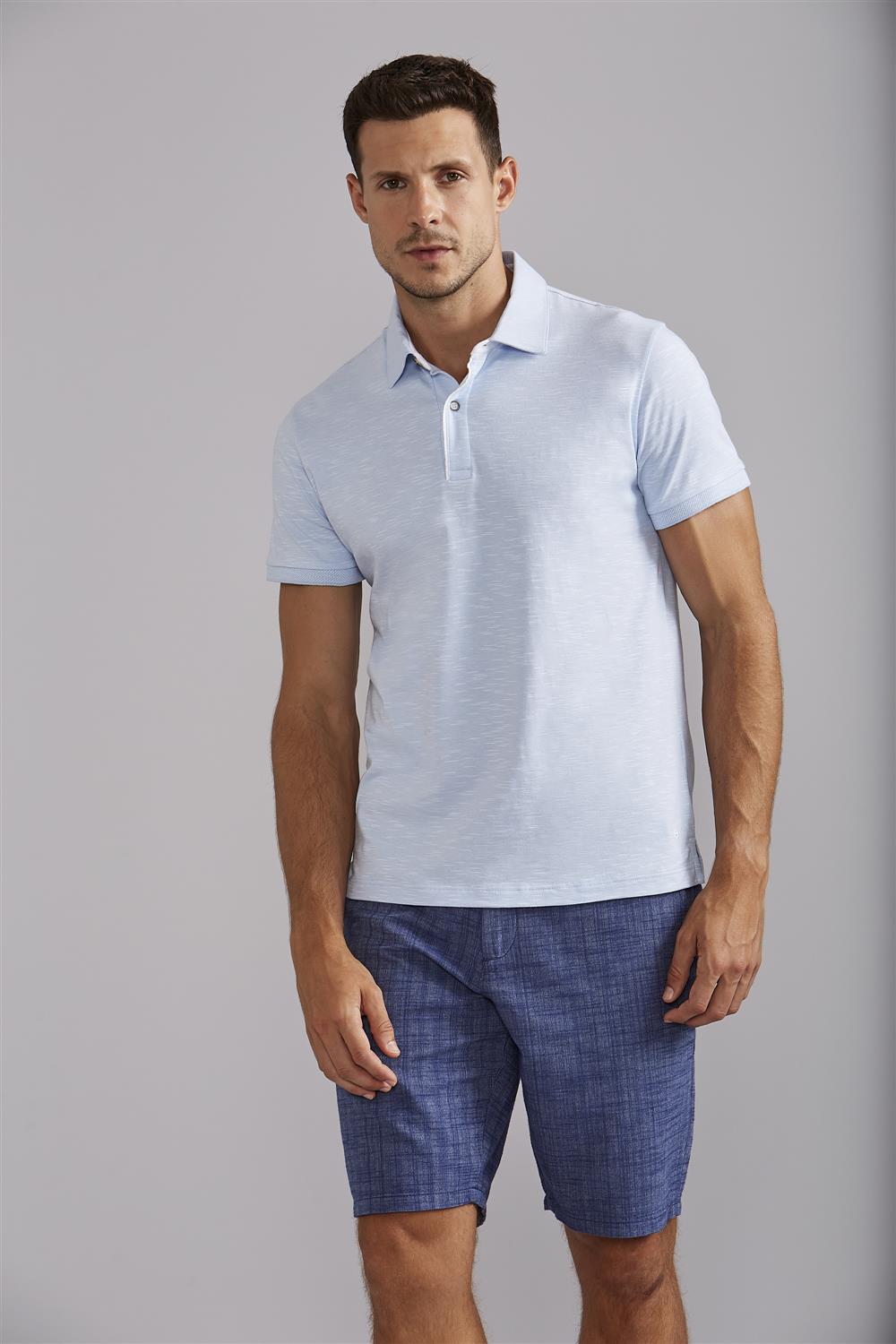 Camisa Polo Malha Slim Fit - Azul Sky / Branco