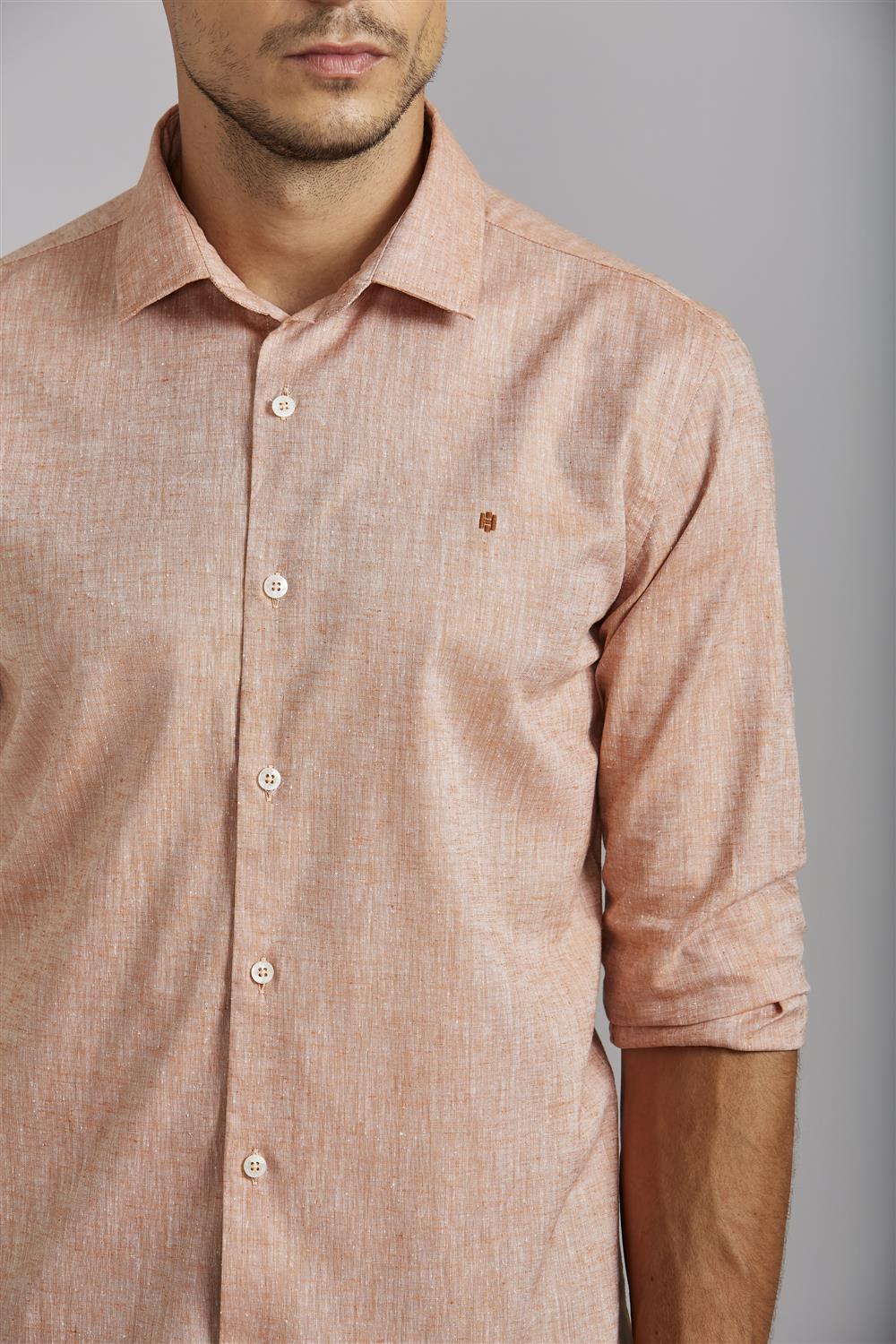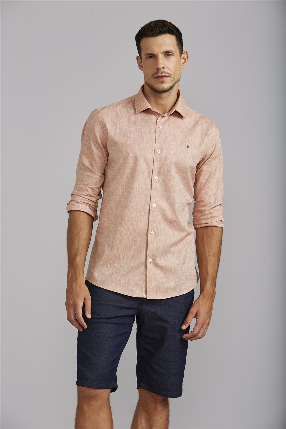 A Camisa Slim Fit é composta por 85% Algodão e 15% Linho.