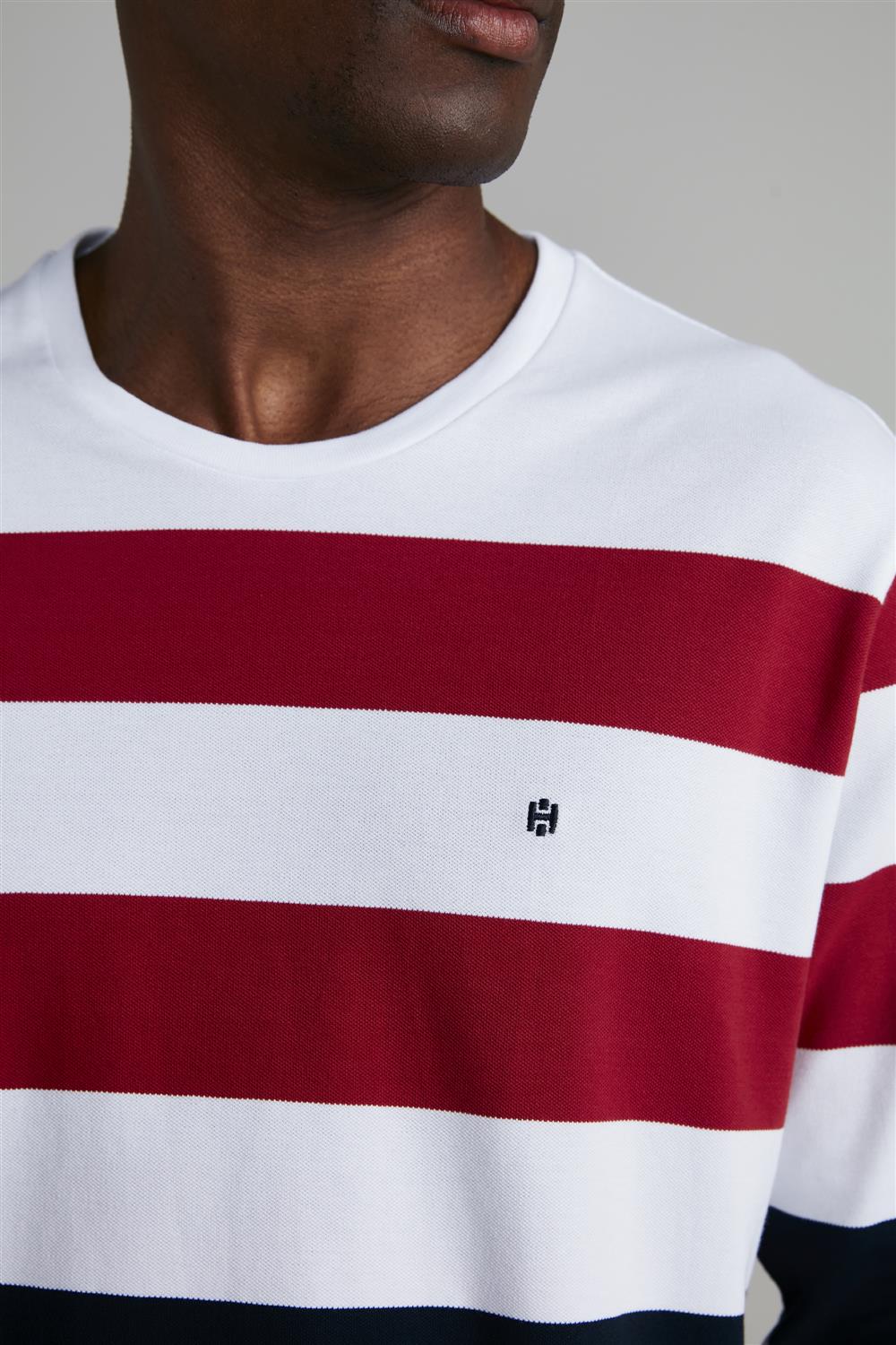Camiseta Manga Longa Piquet Comfort - Branco / Azul Marinho