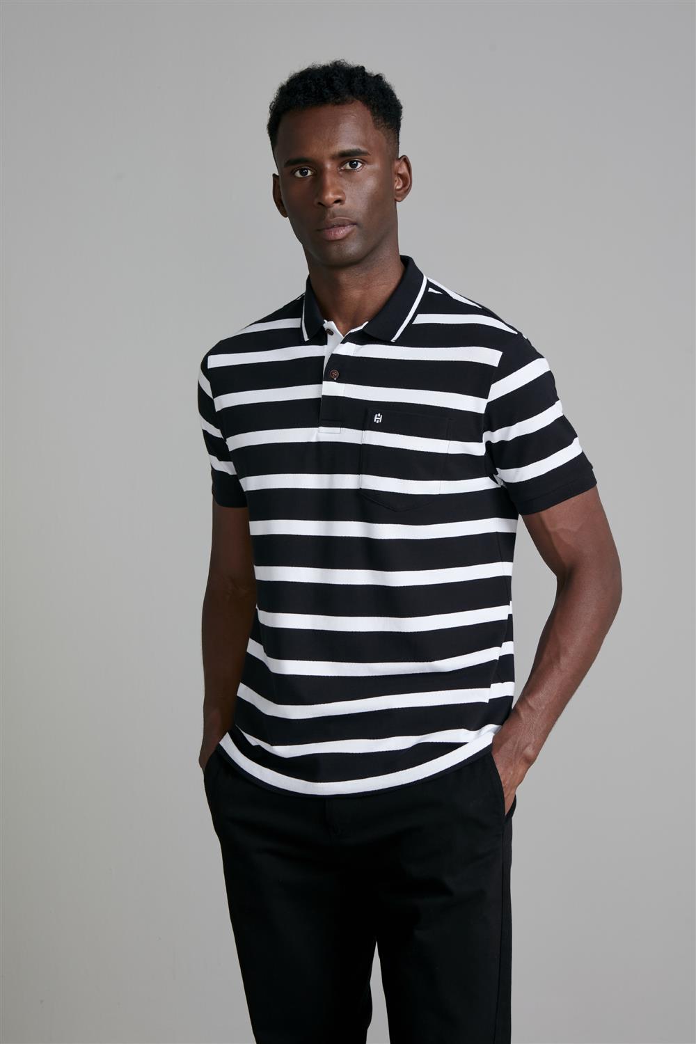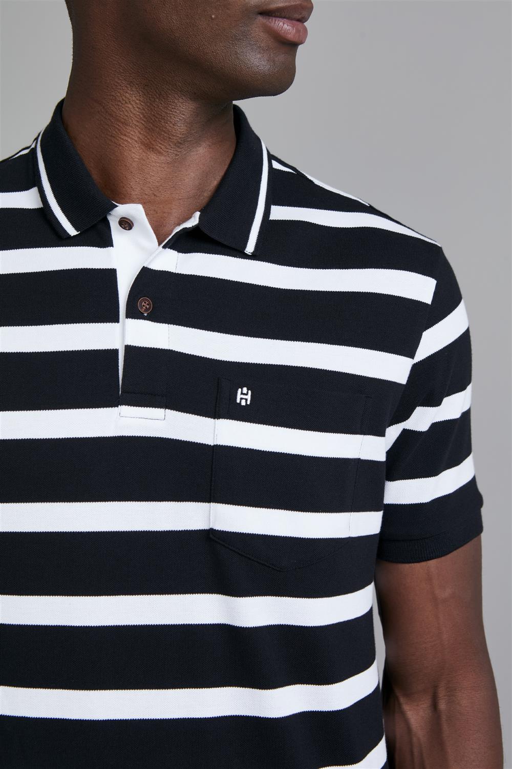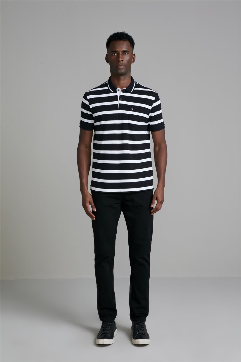 Camisa Polo com Bolso Piquet Comfort - Preto / Branco
