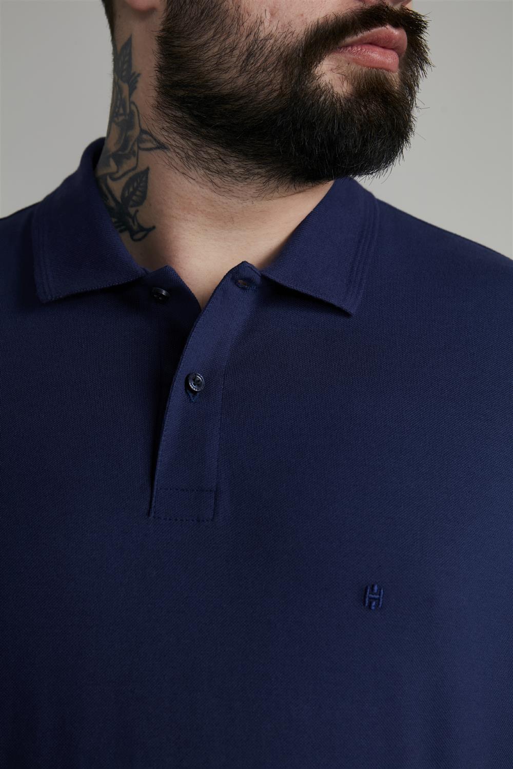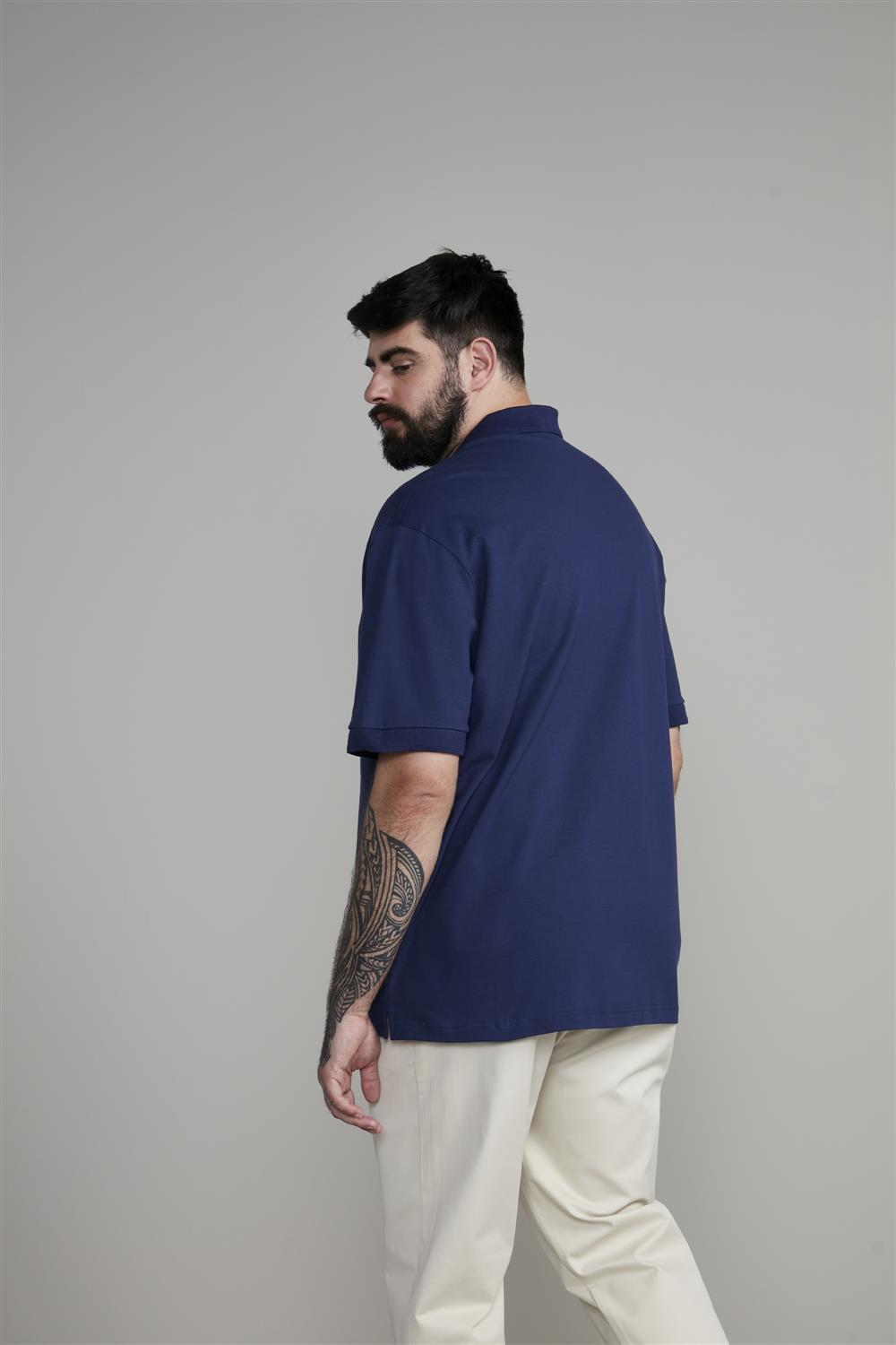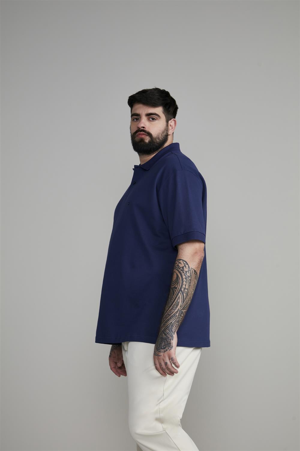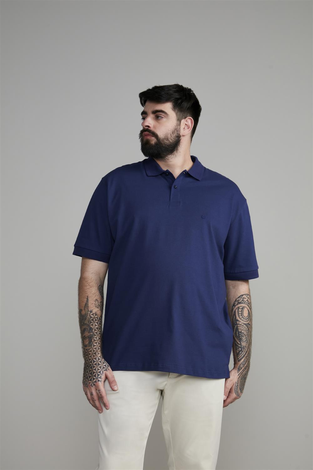 Polo Manga Curta Comfort Piquet - Azul Noturno