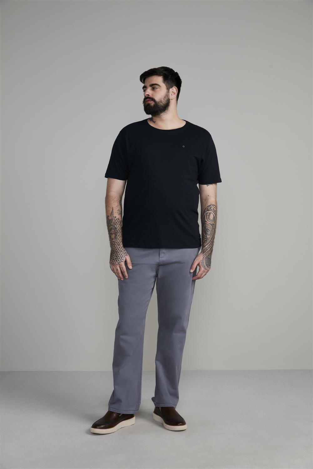 A camiseta masculina é confeccionada em malha de algodão, possui modelagem slim fit, mangas curtas, gola redonda e caimento leve. Apresenta forma ajustada ao corpo, proporcionando uma silhueta marcada ao homem que veste.